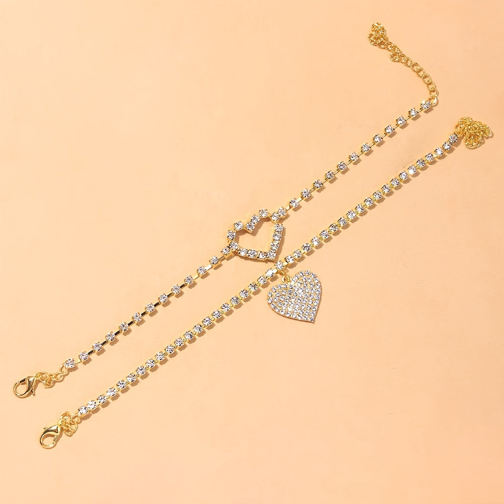 Add some sparkle to your ankle with this stunning heart-shaped tennis anklet set. Each anklet is adorned with rhinestones for a touch of elegance. Perfect for weddings or special occasions.