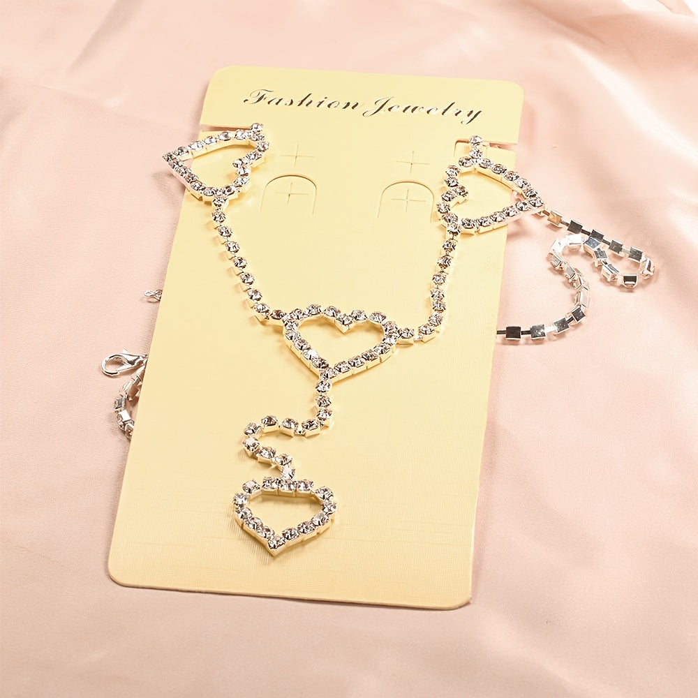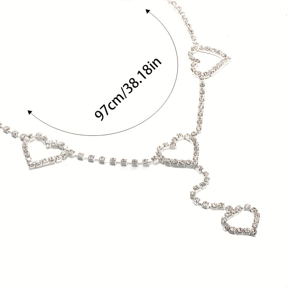Add a touch of sparkle to your outfit with this adjustable waist chain featuring inlaid rhinestone love hearts. Perfect for a Y2K look!