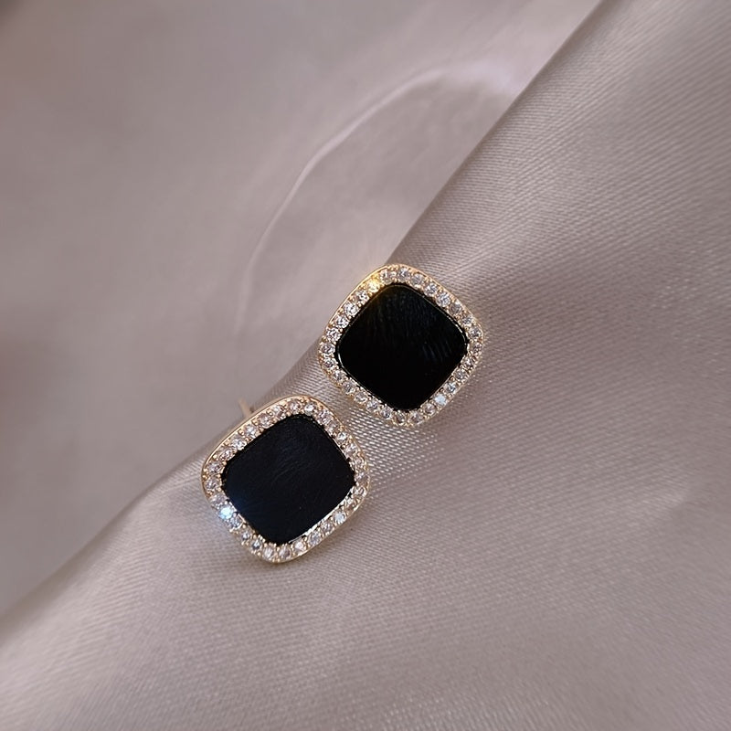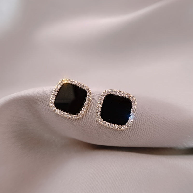 Add a touch of sparkle to your ensemble with these stunning rhinestone square stud earrings.
