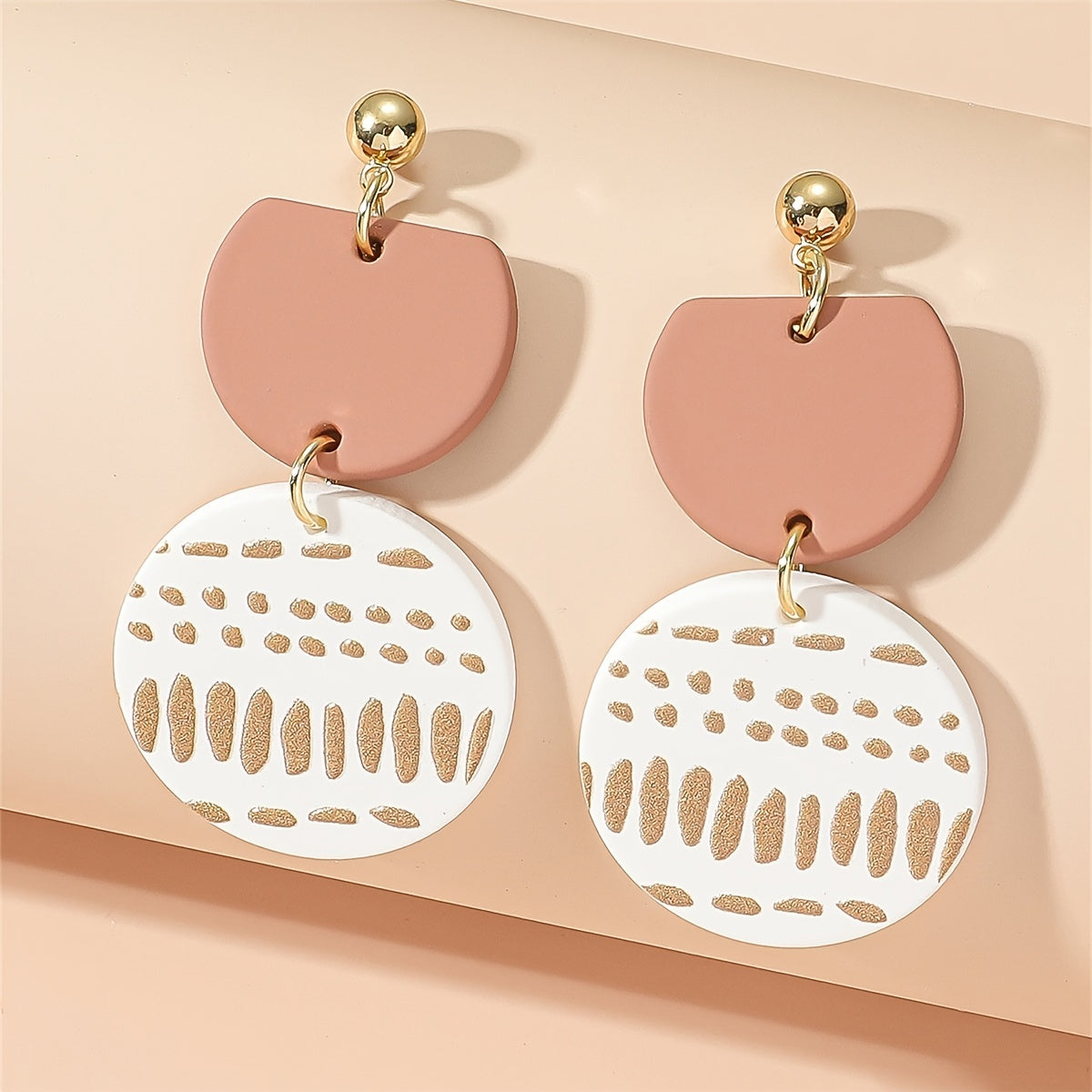 These round dangle earrings feature a stylish ripple print design, making them perfect for daily casual wear. Great as a gift for women and girls who love unique accessories.