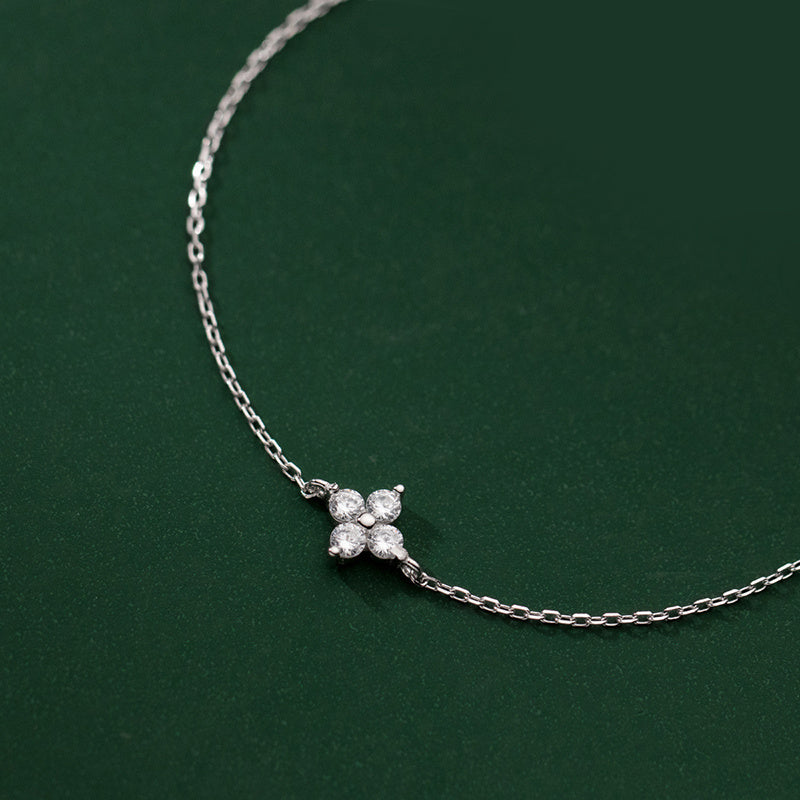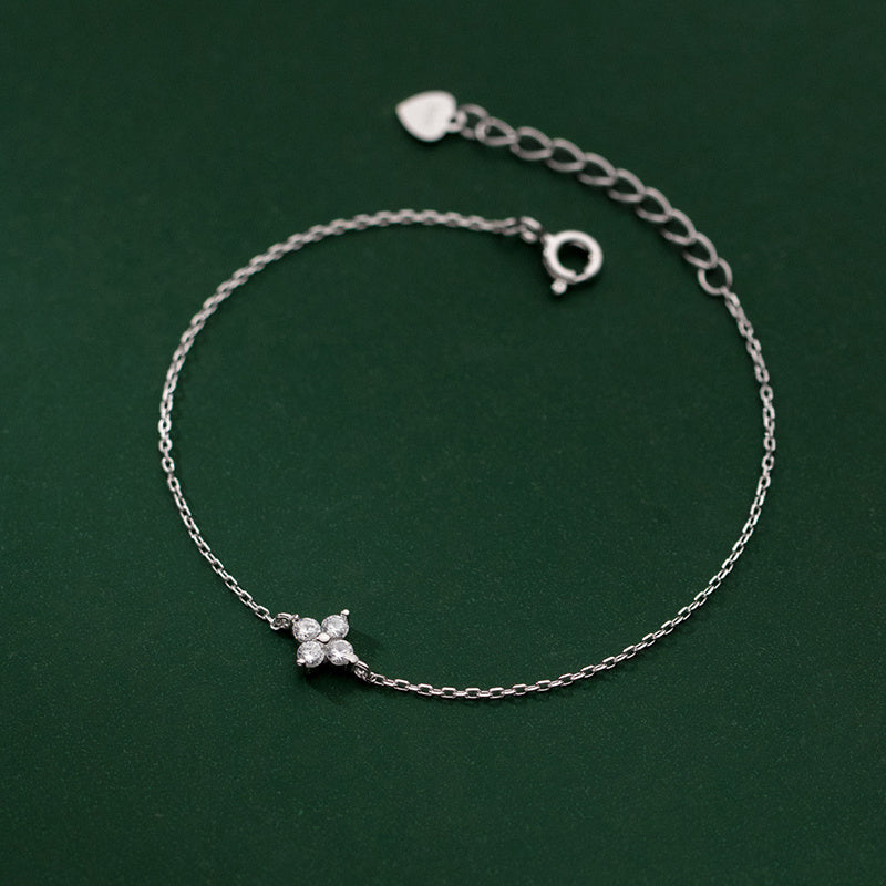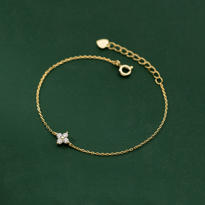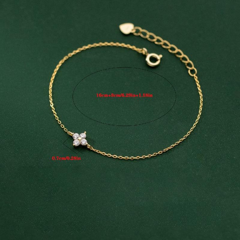 Add a touch of romance to your outfit with this exquisite Four Leaf Flower Bracelet. It features a delicate design with 18K gold plating, making it perfect for parties or special occasions.