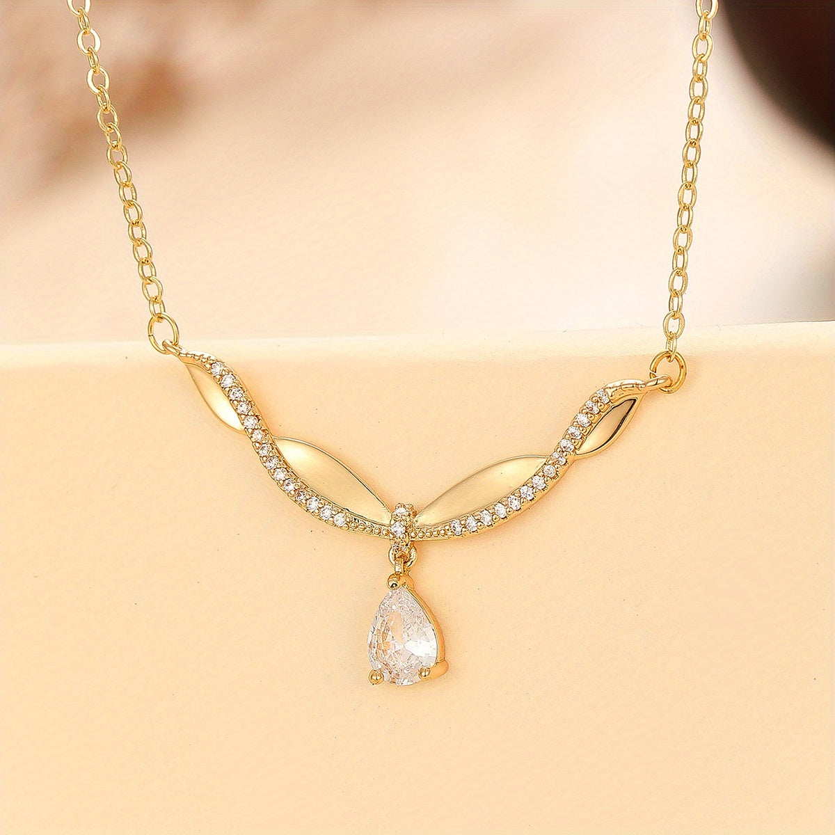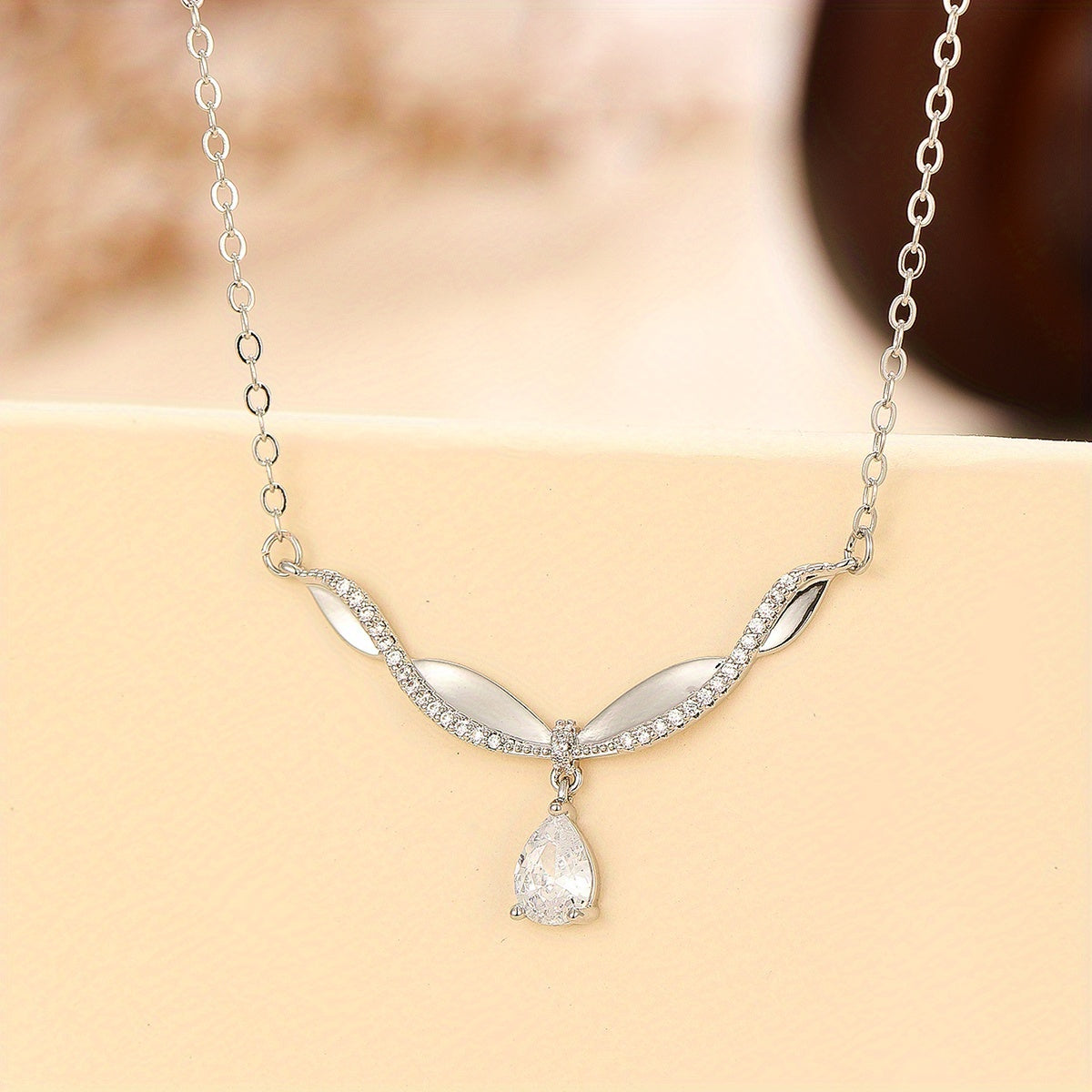 This beautiful pendant necklace is perfect for adding a touch of romance to any outfit. The twisted shape design with a teardrop zircon makes it an elegant and unique piece. Ideal birthday gift for women and girls.
