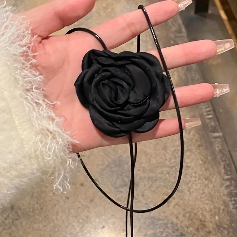 Add a touch of elegance to your outfit with this rose choker necklace. Featuring a delicate rose pendant on an adjustable thin cord, perfect for parties and everyday wear.