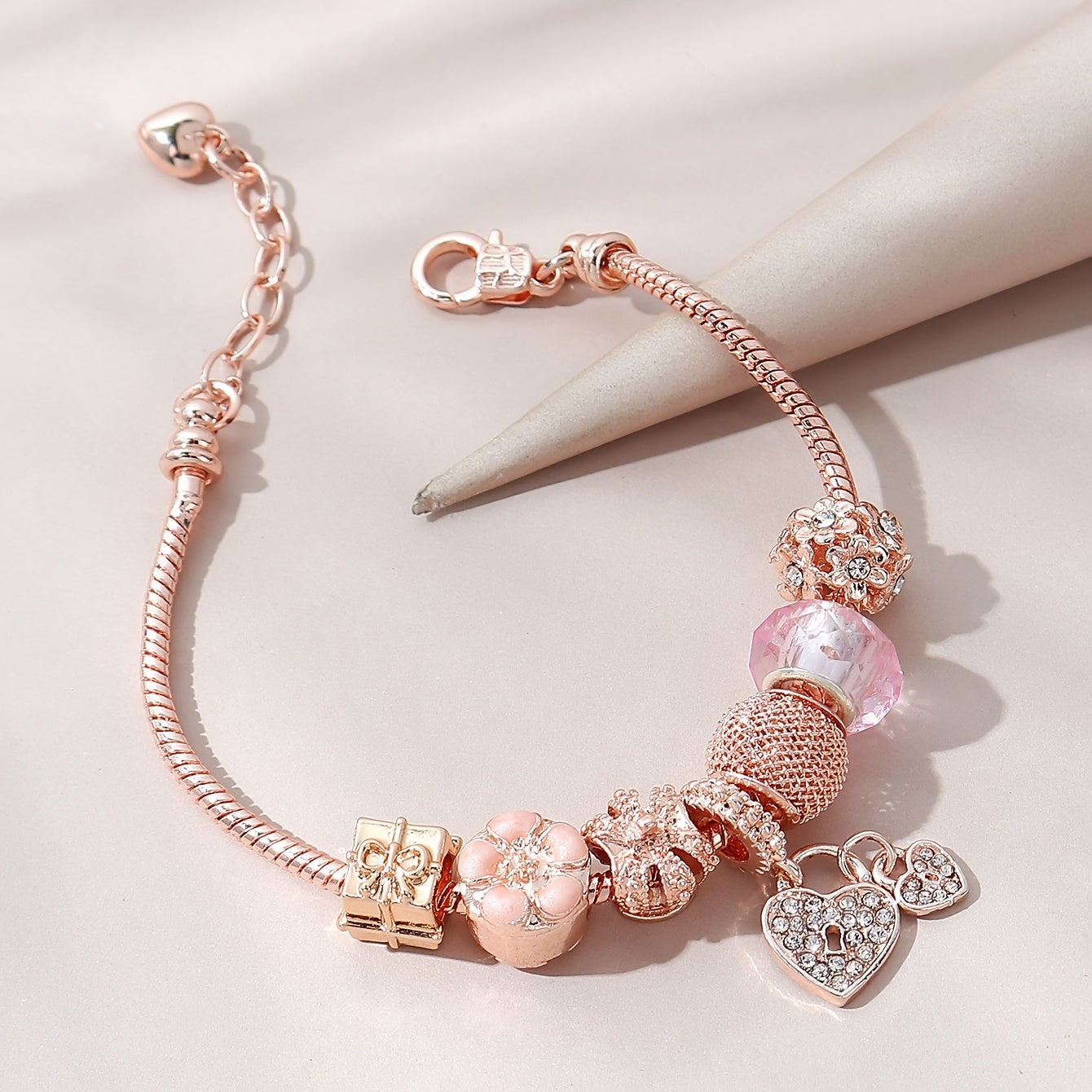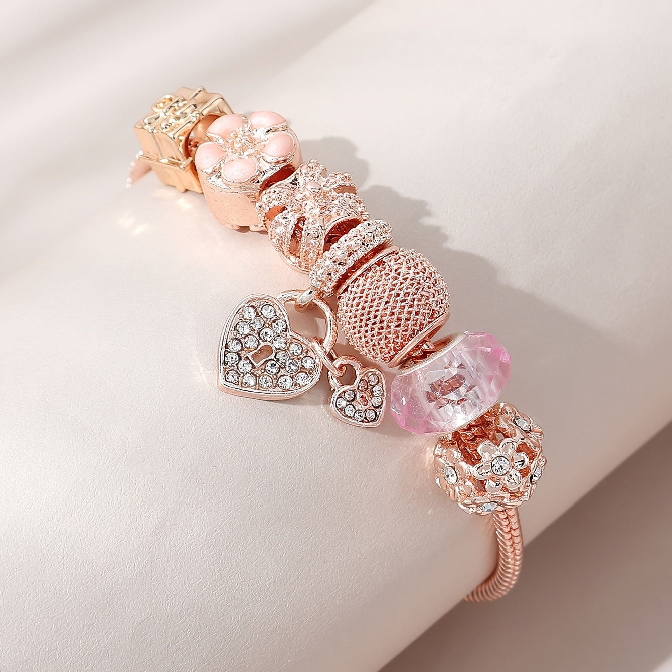 This fashionable bracelet features a heart crown flower beads design. Add a touch of elegance to your look with this stunning piece of women's jewelry and accessories.