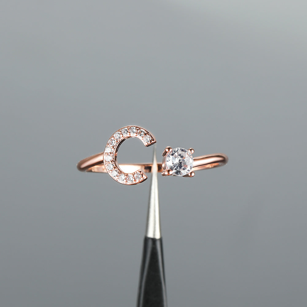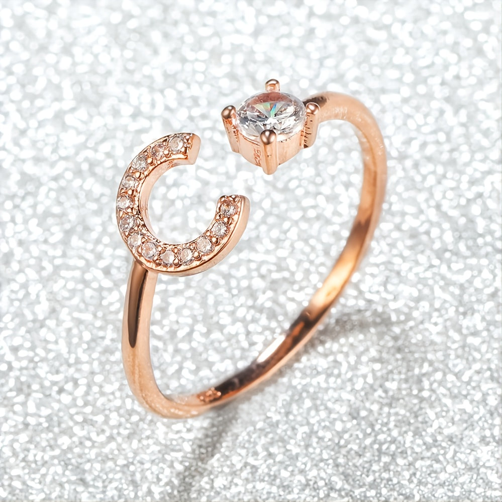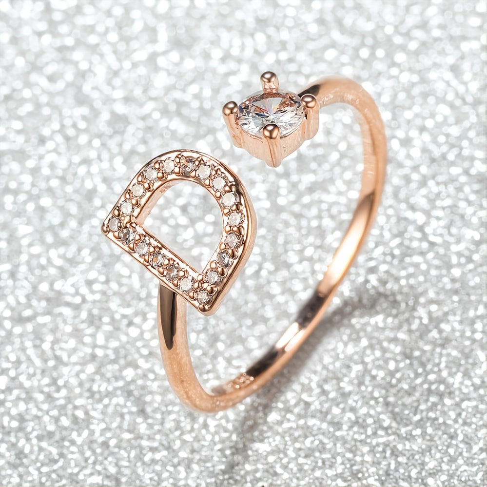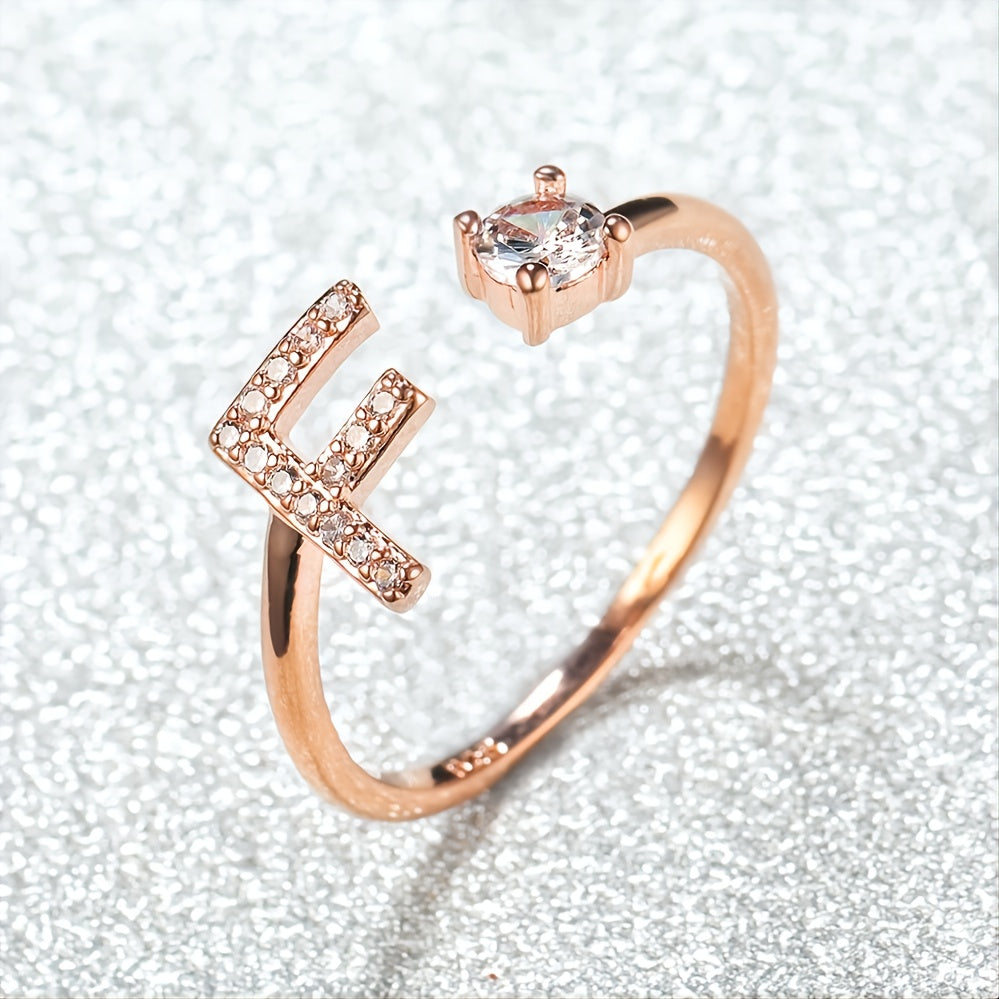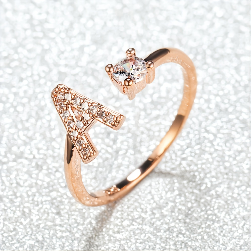 This beautiful Rose Golden 26 Letter Ring is a perfect wedding or bridesmaid gift. It can also be worn as a couple ring to symbolize your love.