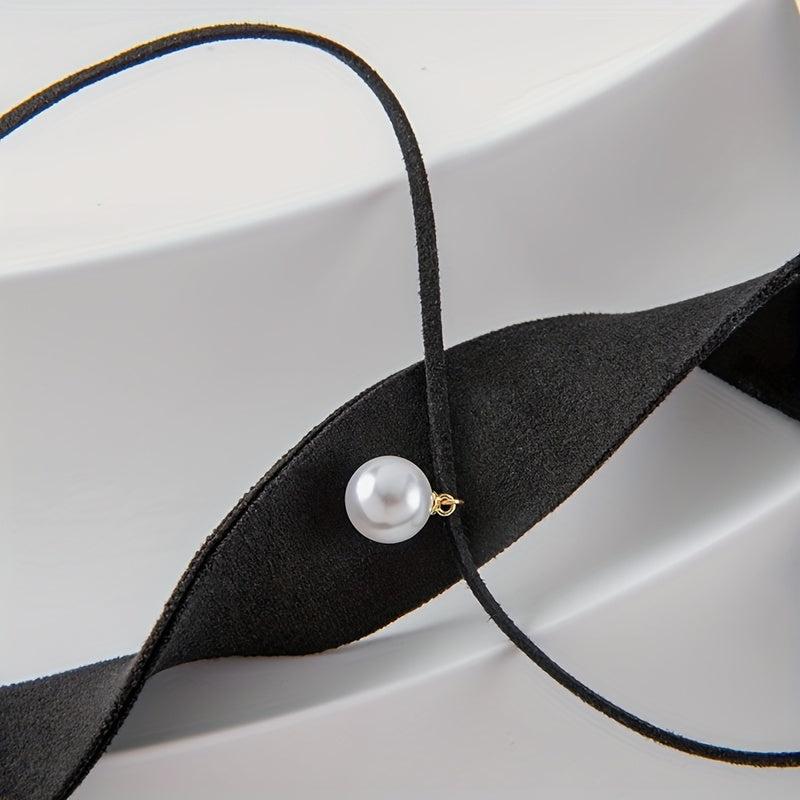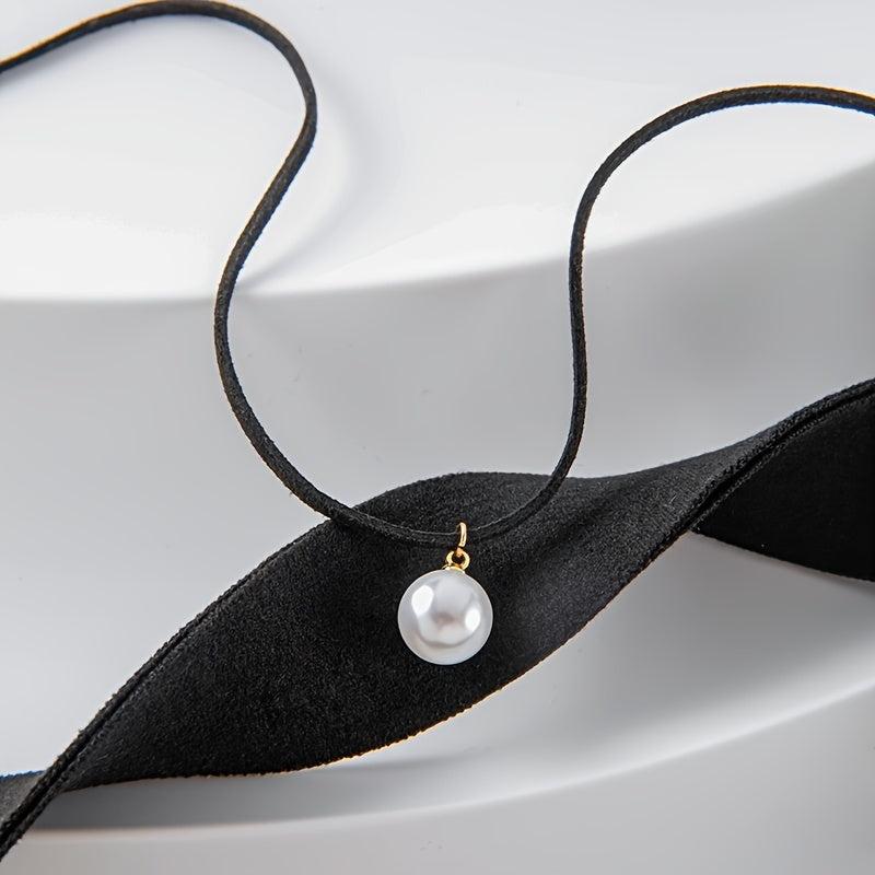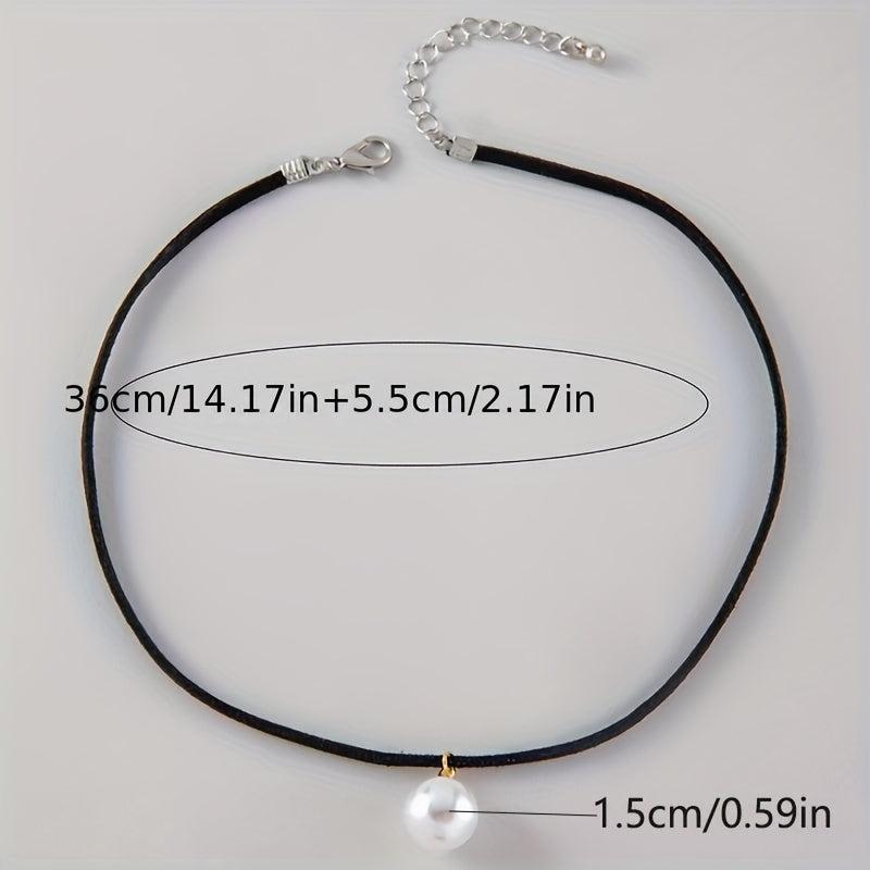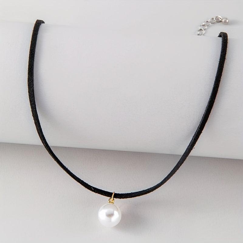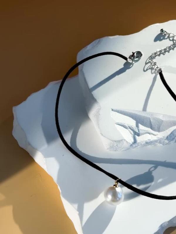 Elegant pendant necklace featuring a round cut faux pearl on a fiber rope clavicle chain. Perfect for adding a touch of sophistication to any outfit.
