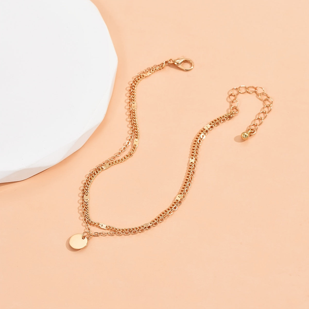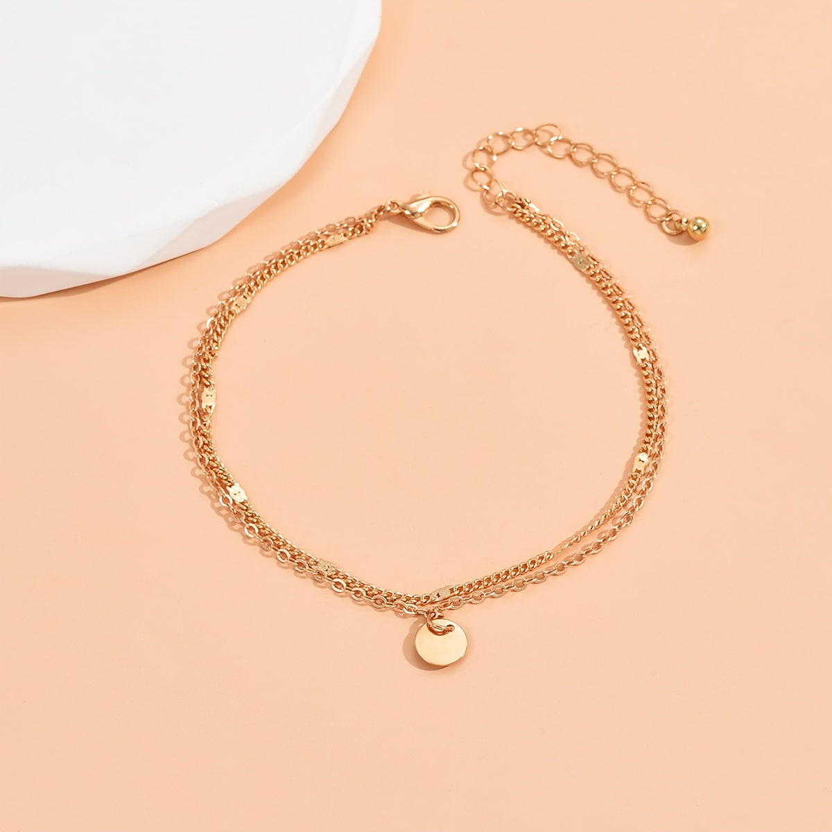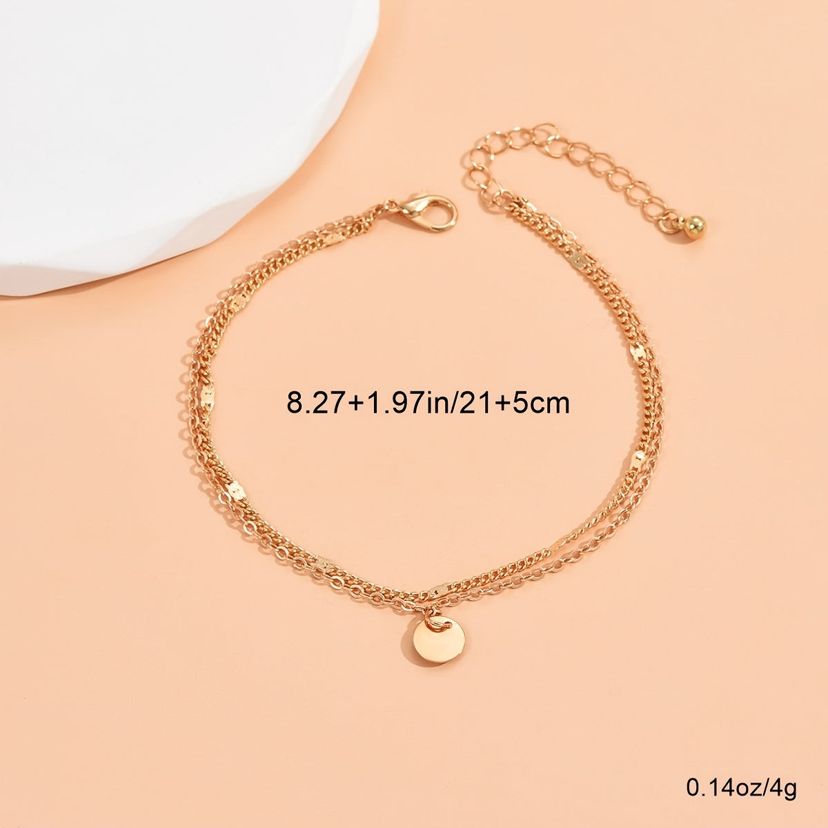 This anklet features a round shape pendant with a double layers chain design, perfect for stacking and adding a stylish touch to your ankles.