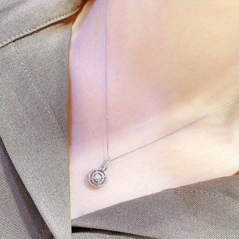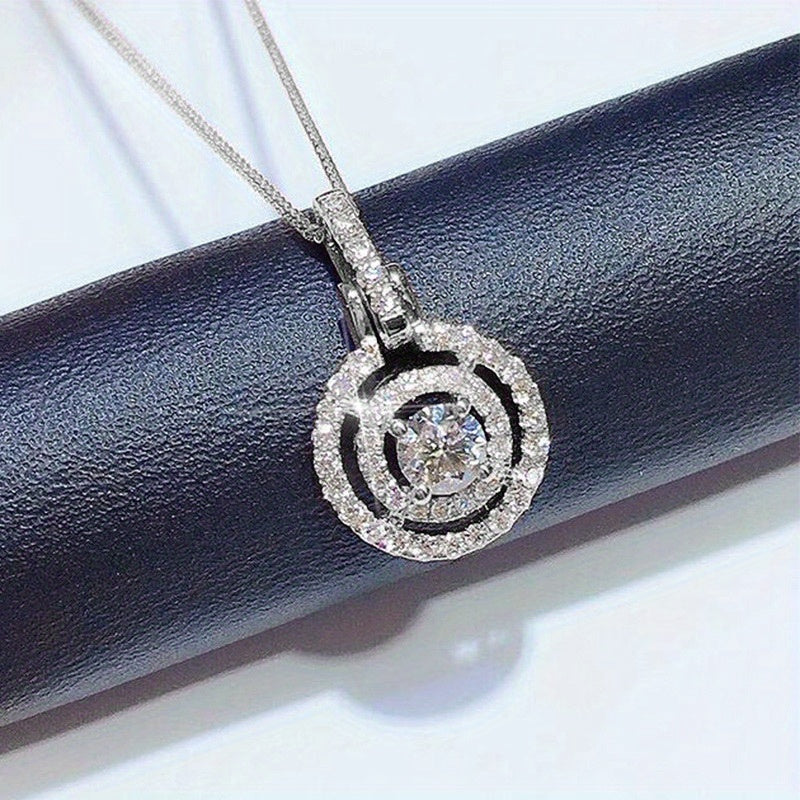 Elegant silver plated necklace with round zircon pendant, perfect for wedding parties or daily wear.