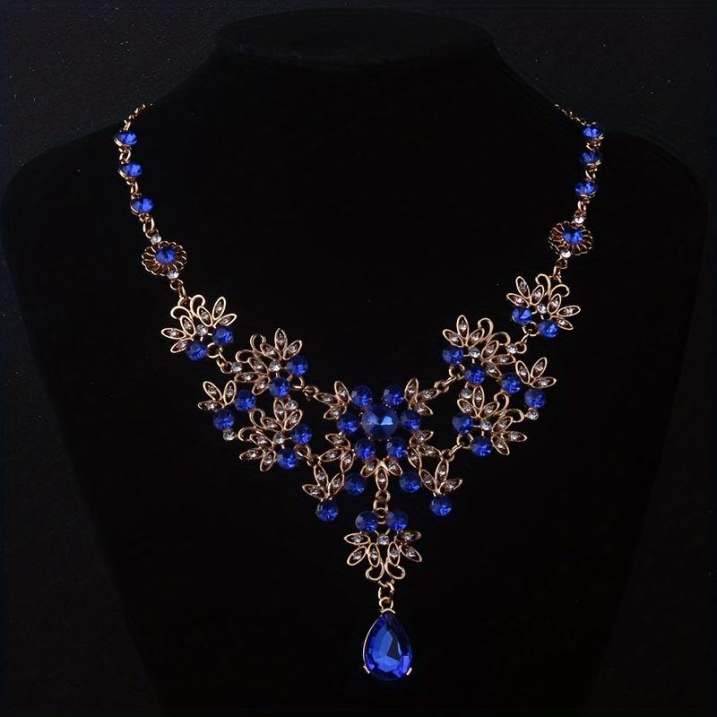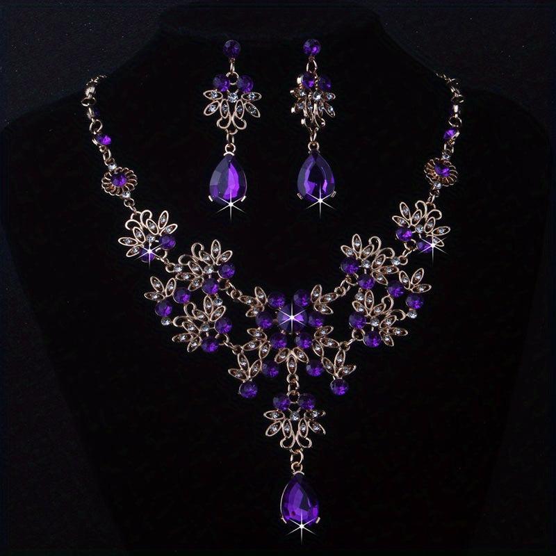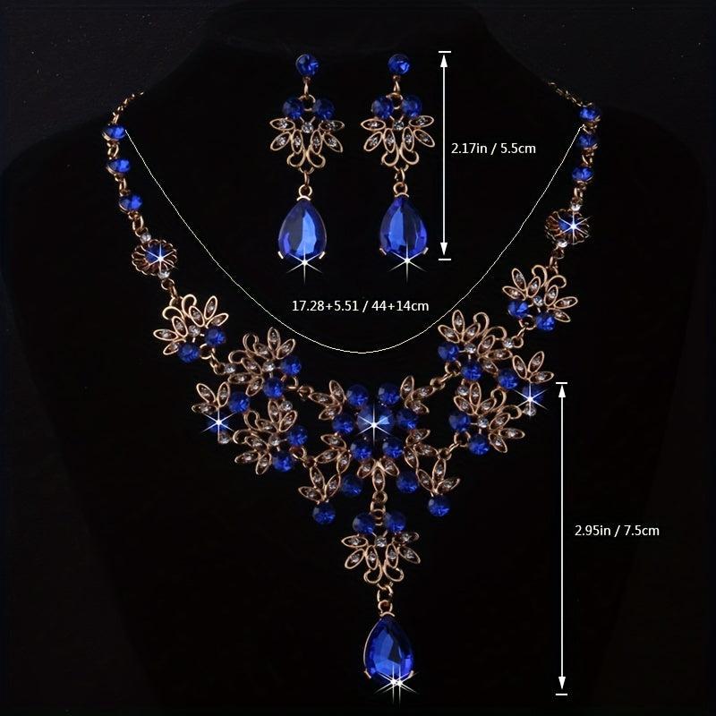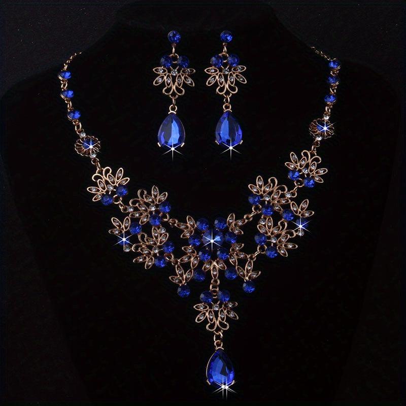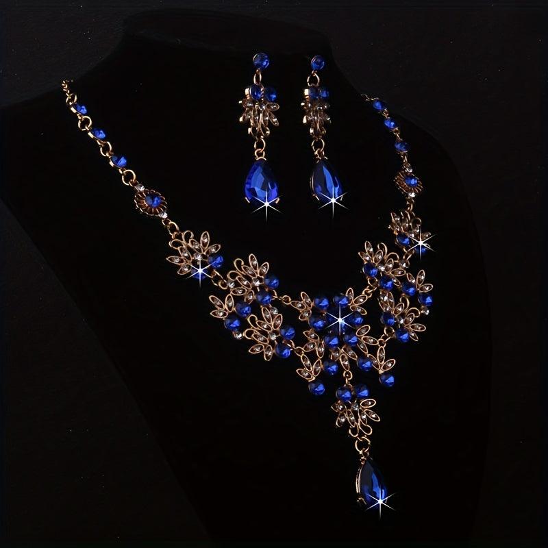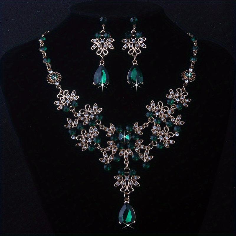 This elegant set includes a leaf-shaped flower rhinestone necklace and earrings, perfect for weddings, stage performances, evening parties, and formal events.