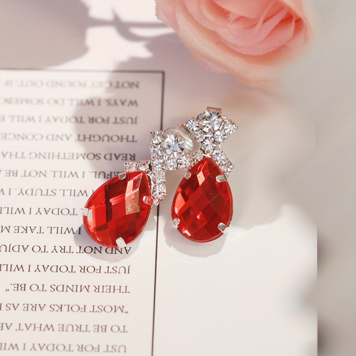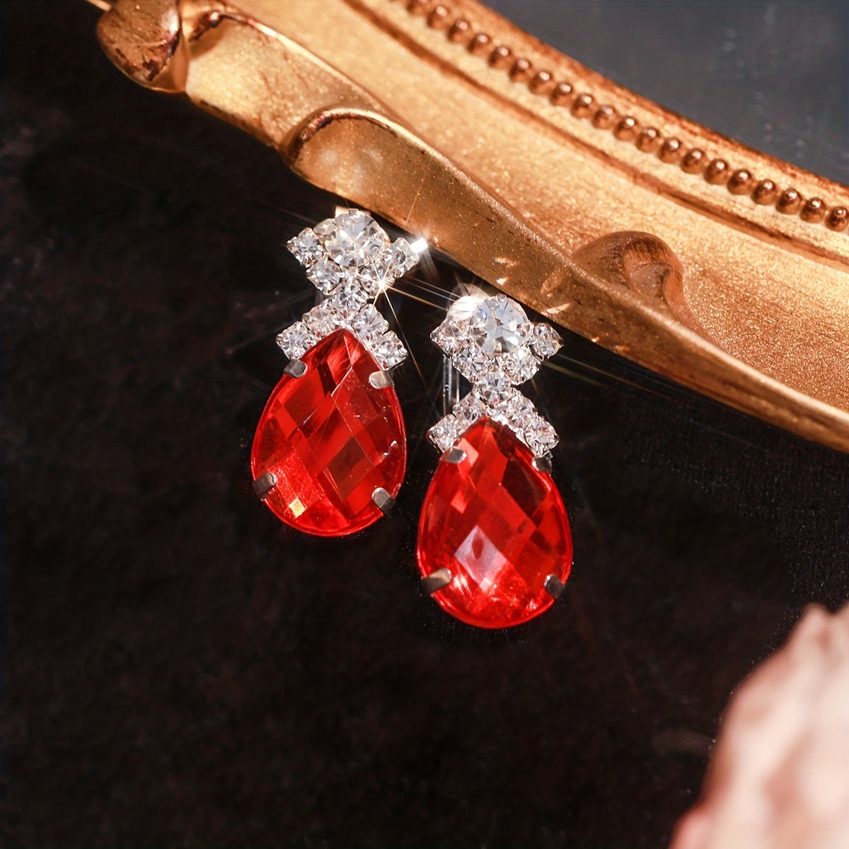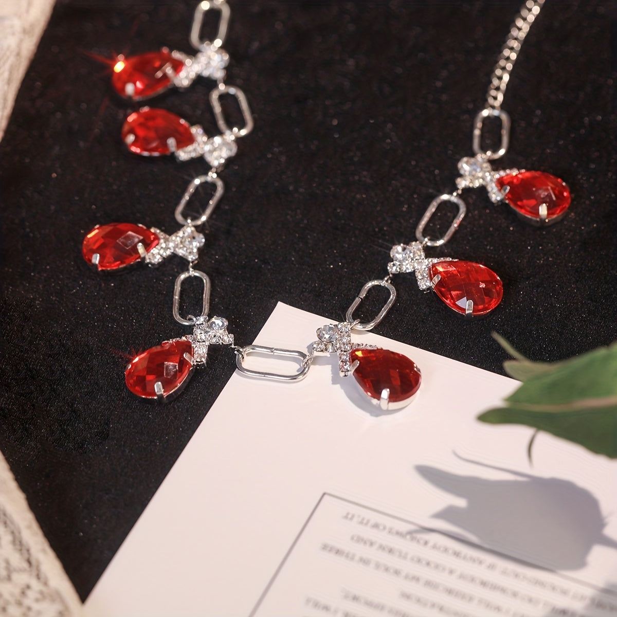This elegant jewelry set includes 3pcs earrings and a necklace. Adorned with red zircon, it's ideal for evening parties and cocktail events. A wonderful gift for her!