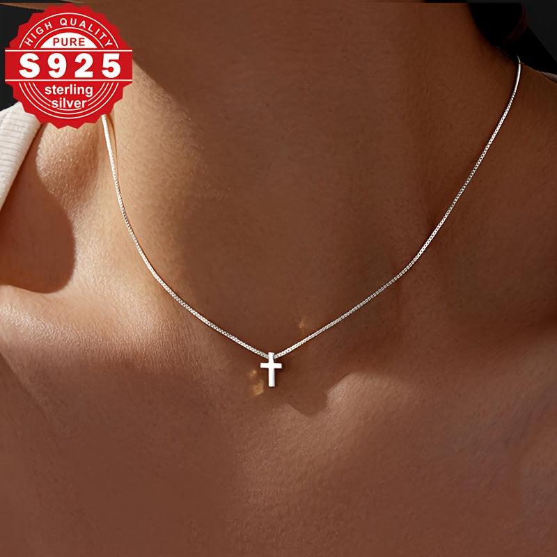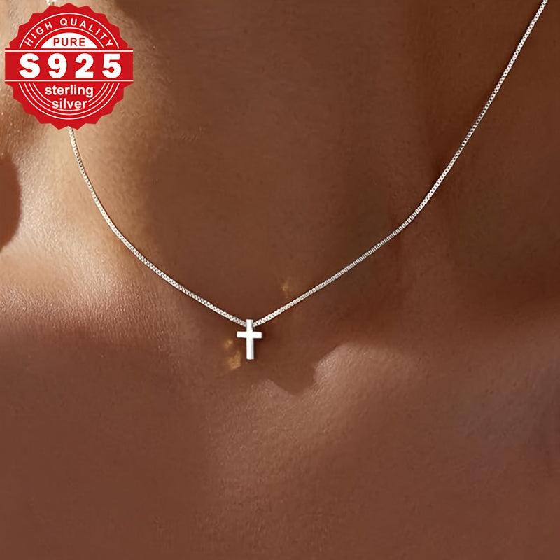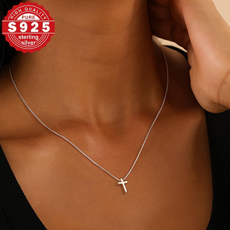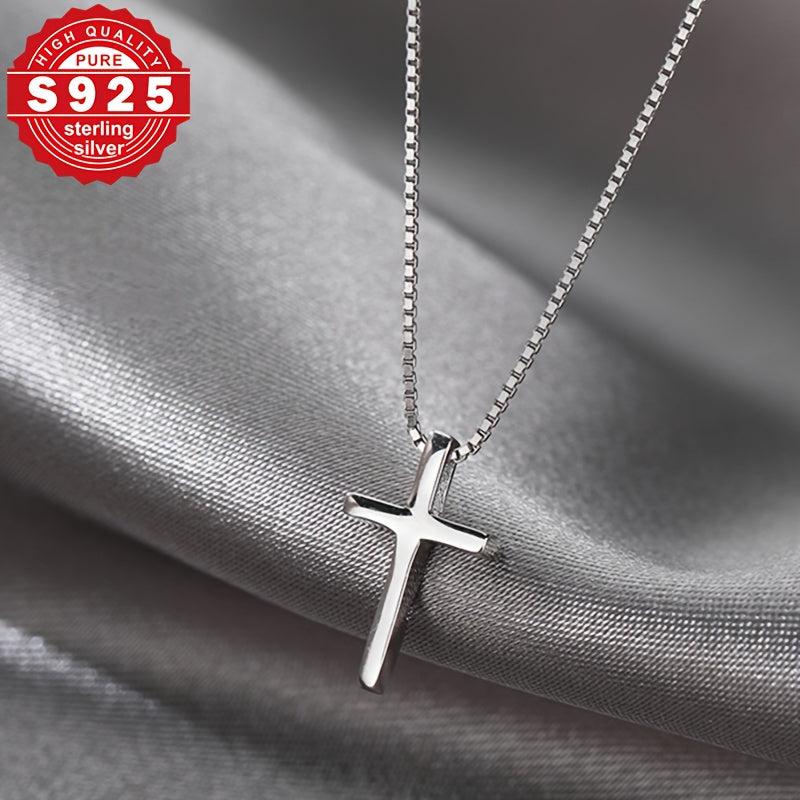 This S925 cross necklace is designed in a European and American style. It weighs 2.2g and is hypoallergenic, making it suitable for sensitive skin.