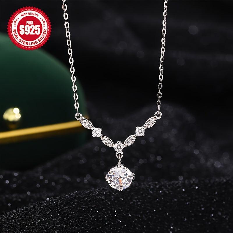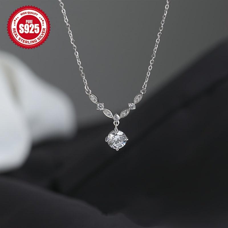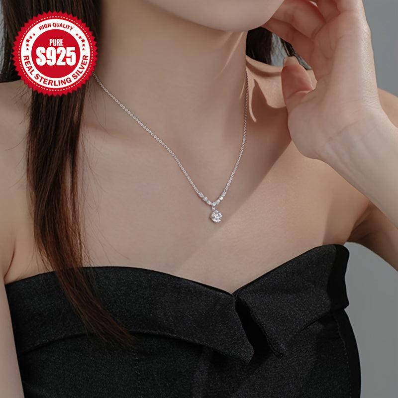 Elevate your style with this high-end meteorite necklace featuring zirconia inlay. Crafted from pure silvery S925, it's perfect for any occasion.