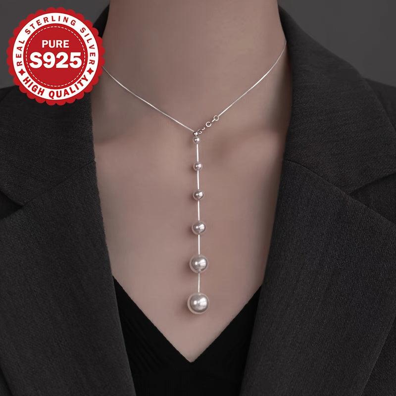 This necklace features beautiful gradient shell beads that add a touch of elegance to any outfit. Made of pure silver, it's a stunning accessory to enhance your look.