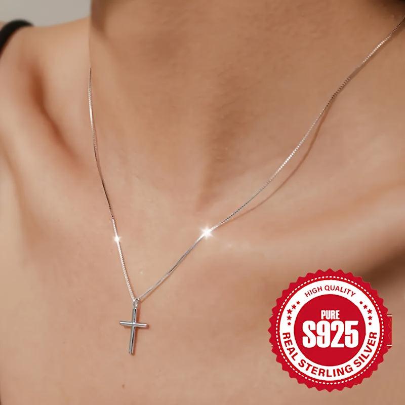 This minimalist cross necklace is crafted from high-quality S925 silver, making it a timeless classic. It is the perfect gift idea for anyone, and its hypoallergenic properties ensure comfortable wear.