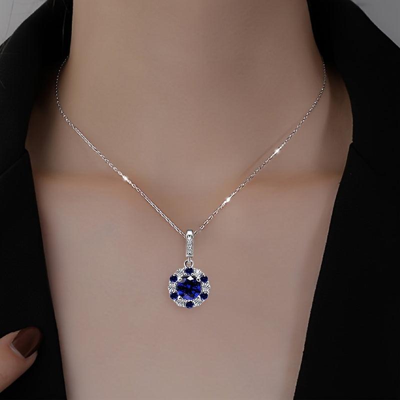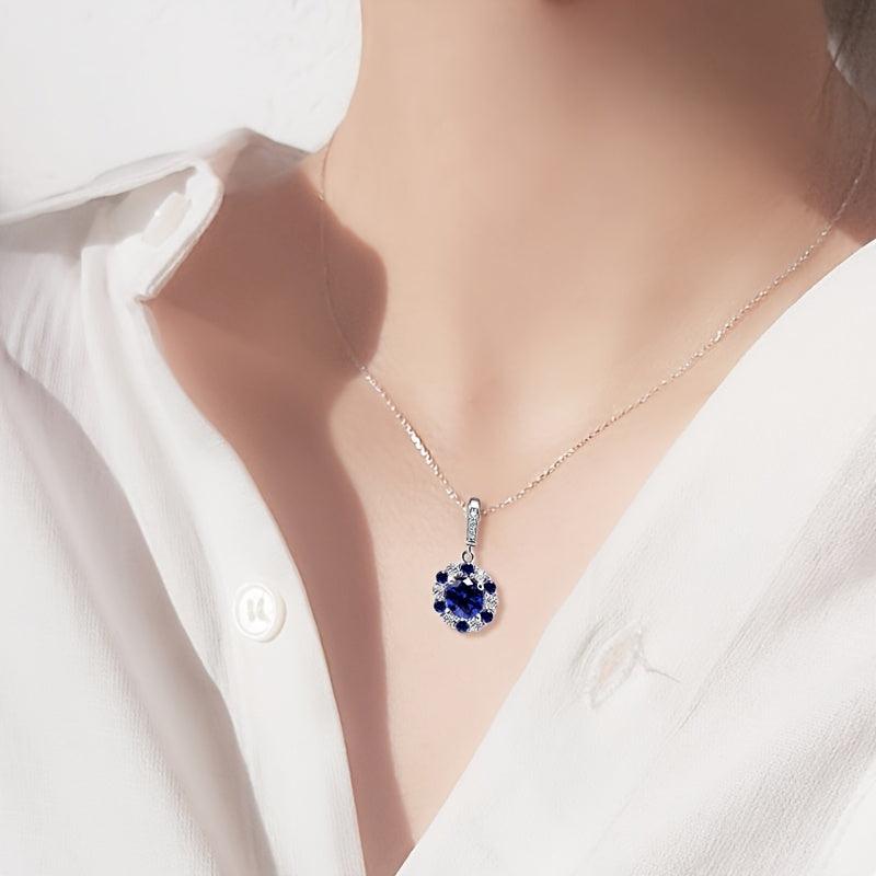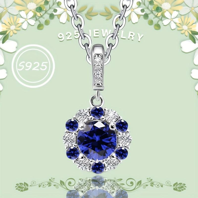 Elegant S925 silver necklace with cubic zirconia pendant. Matched with fashionable earrings for everyday wear. Perfect for birthday parties and gifts.