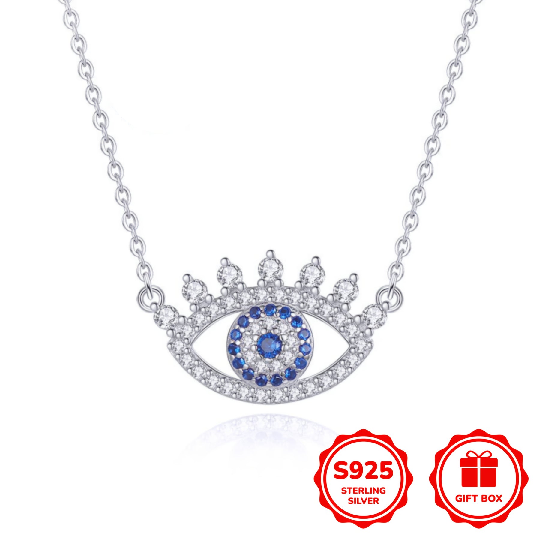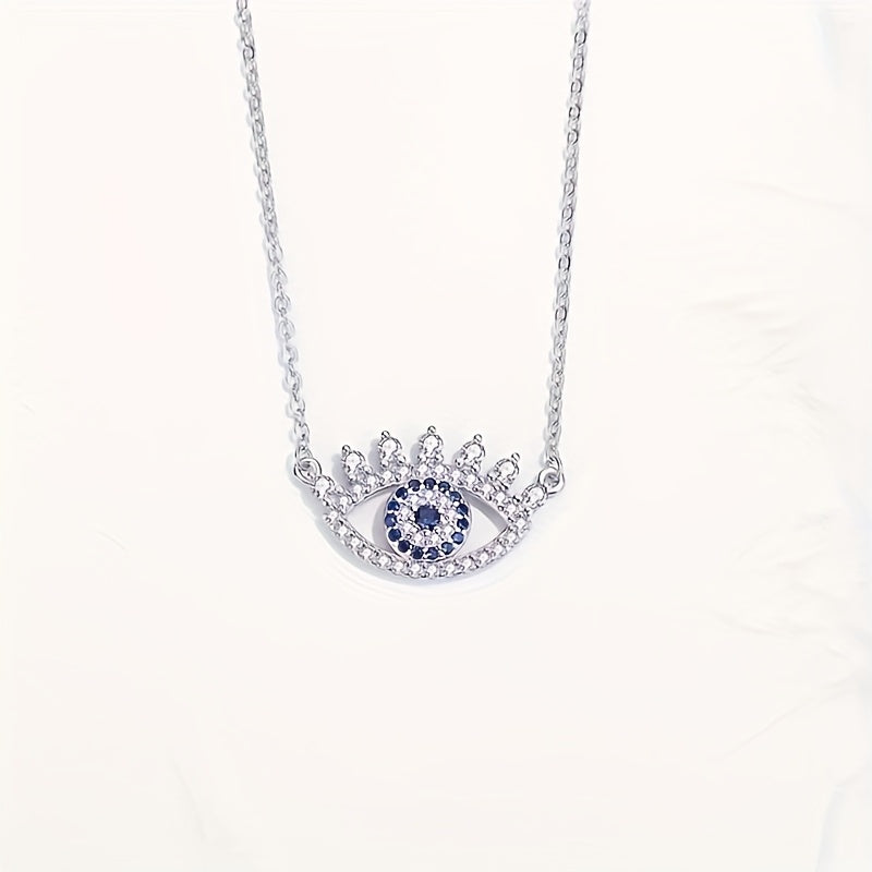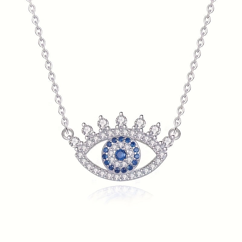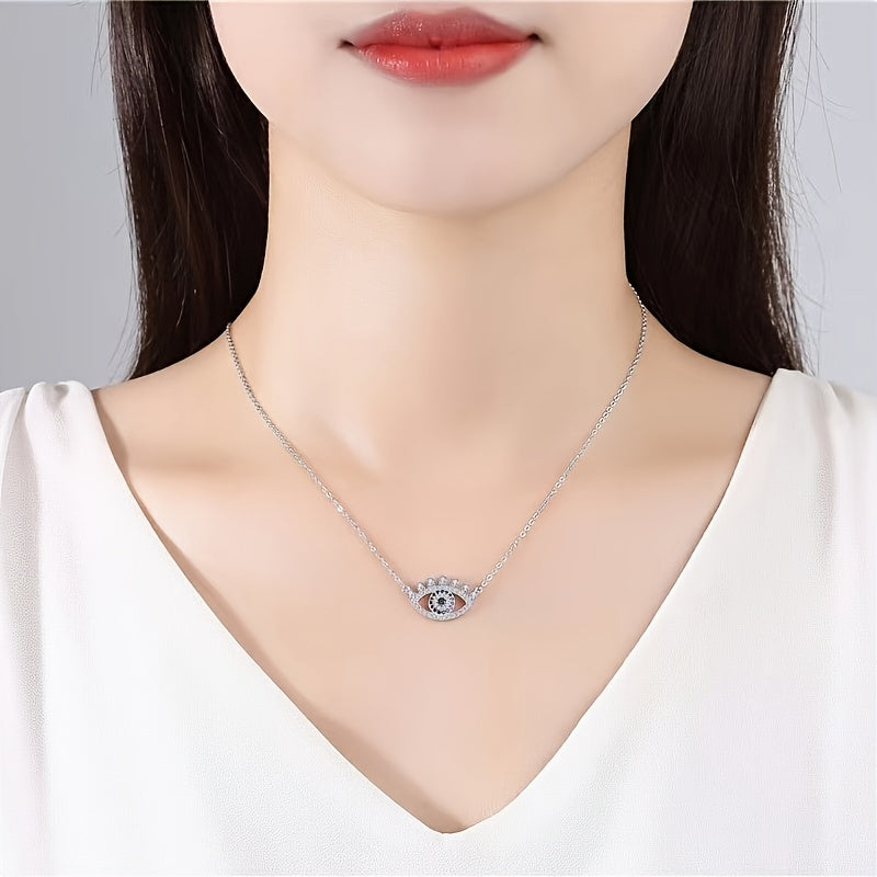 This elegant pendant necklace is made of S925 silver and features a eye design with synthetic zirconia stones, weighing 3.5g. It's a perfect gift for a girlfriend and hypoallergenic.