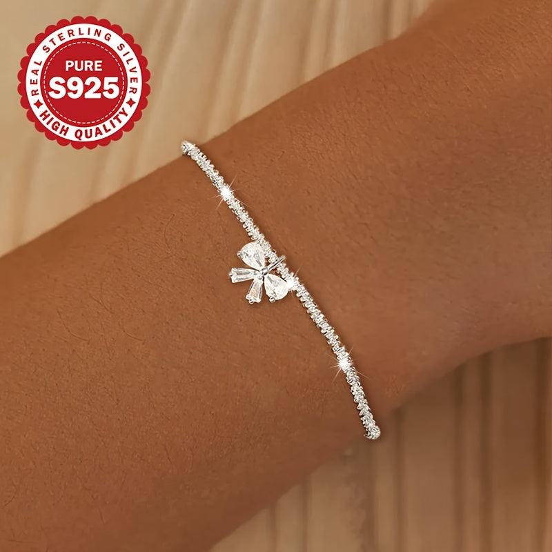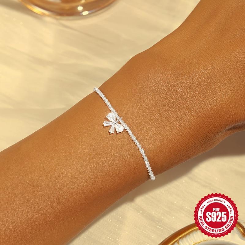 This elegant S925 pure silver bracelet is a perfect accessory for parties, banquets, and weddings. It is lightweight at 2g and sparkles beautifully, making it a great gift for any occasion.