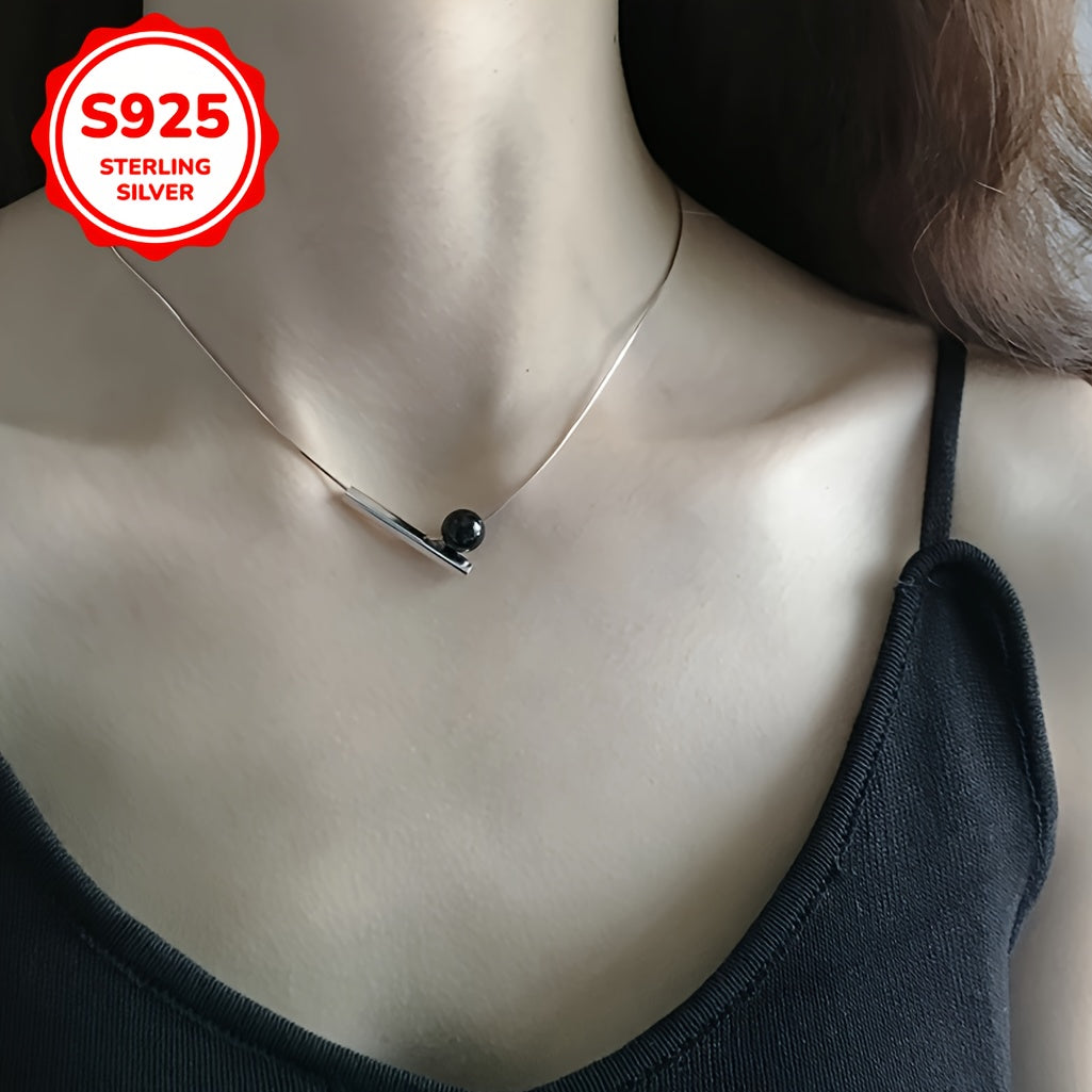 This minimalist necklace is designed for students and perfect for everyday wear. It features a geometric agate pendant on a snake bone chain, making it a versatile accessory. Ideal as a gift for a girlfriend.