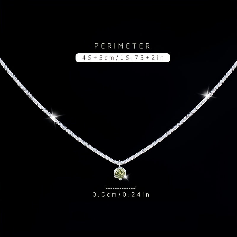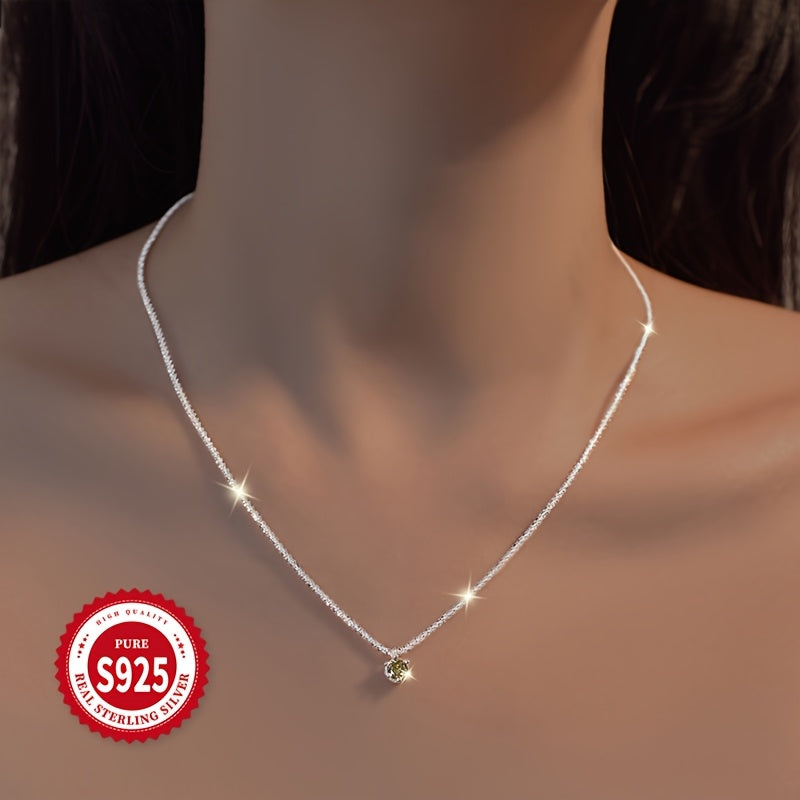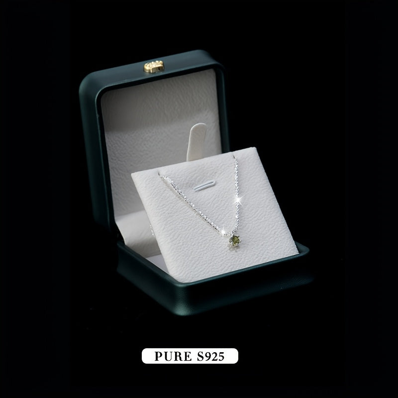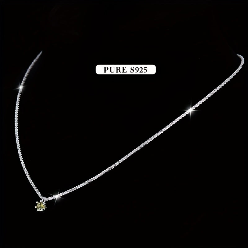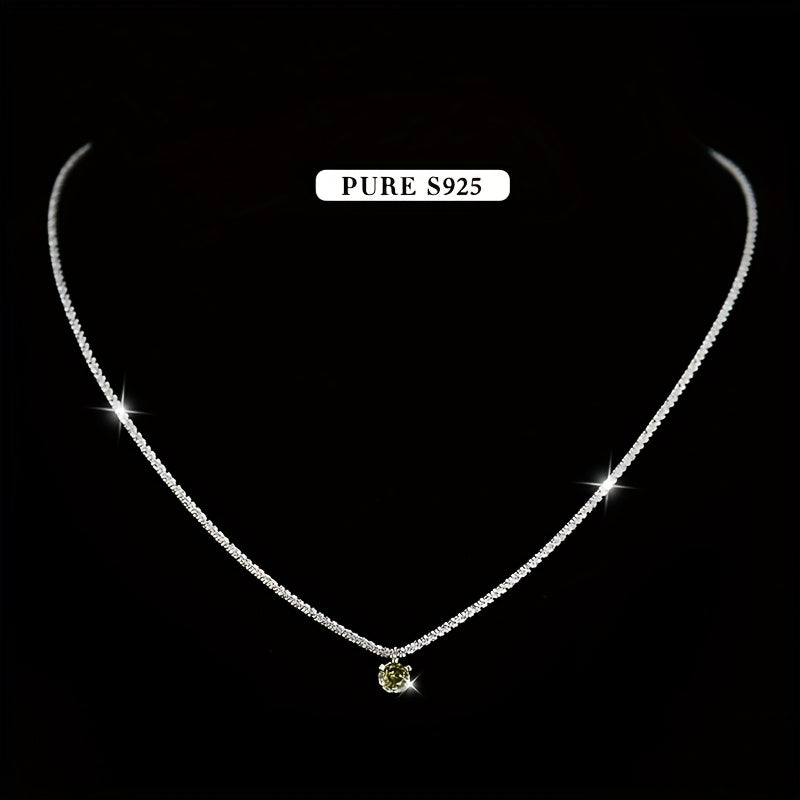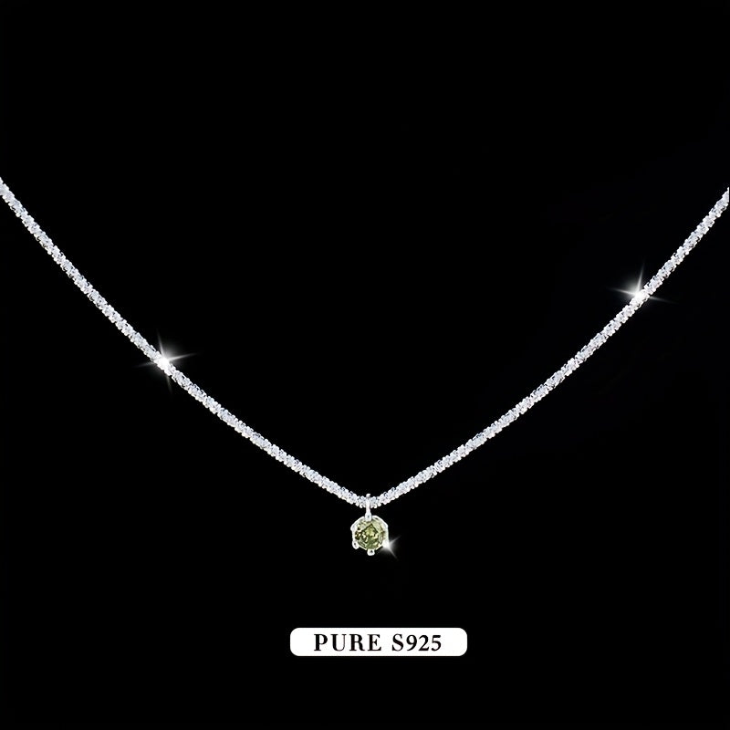 Add a touch of summer charm with this lightweight necklace featuring a shimmering olive green garnet. Made of pure 925 silver, this versatile accessory is perfect for any occasion.