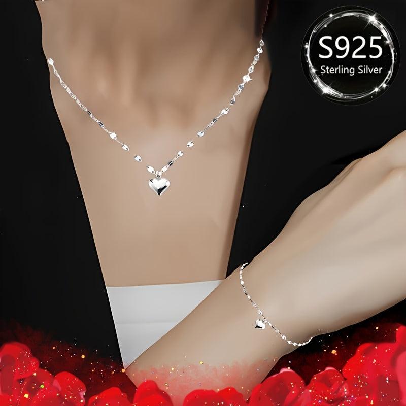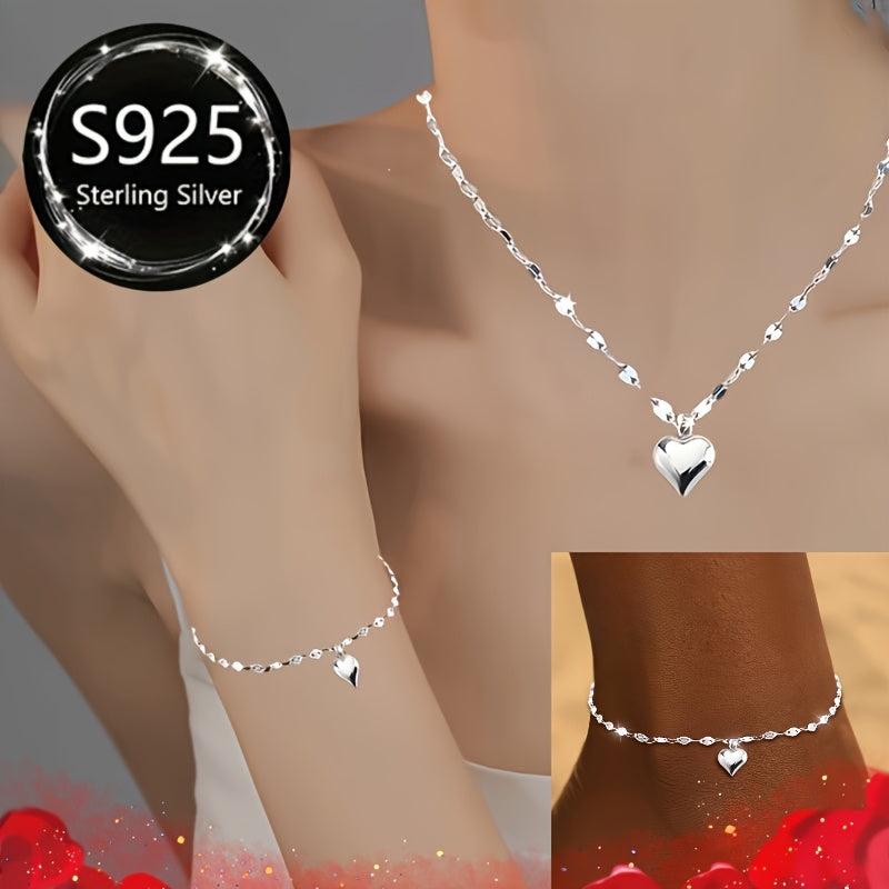 This three-piece jewelry set includes a heart lip chain necklace, bracelet, and anklet. Made of high-quality S925 silver, these pieces are perfect for all seasons and occasions.