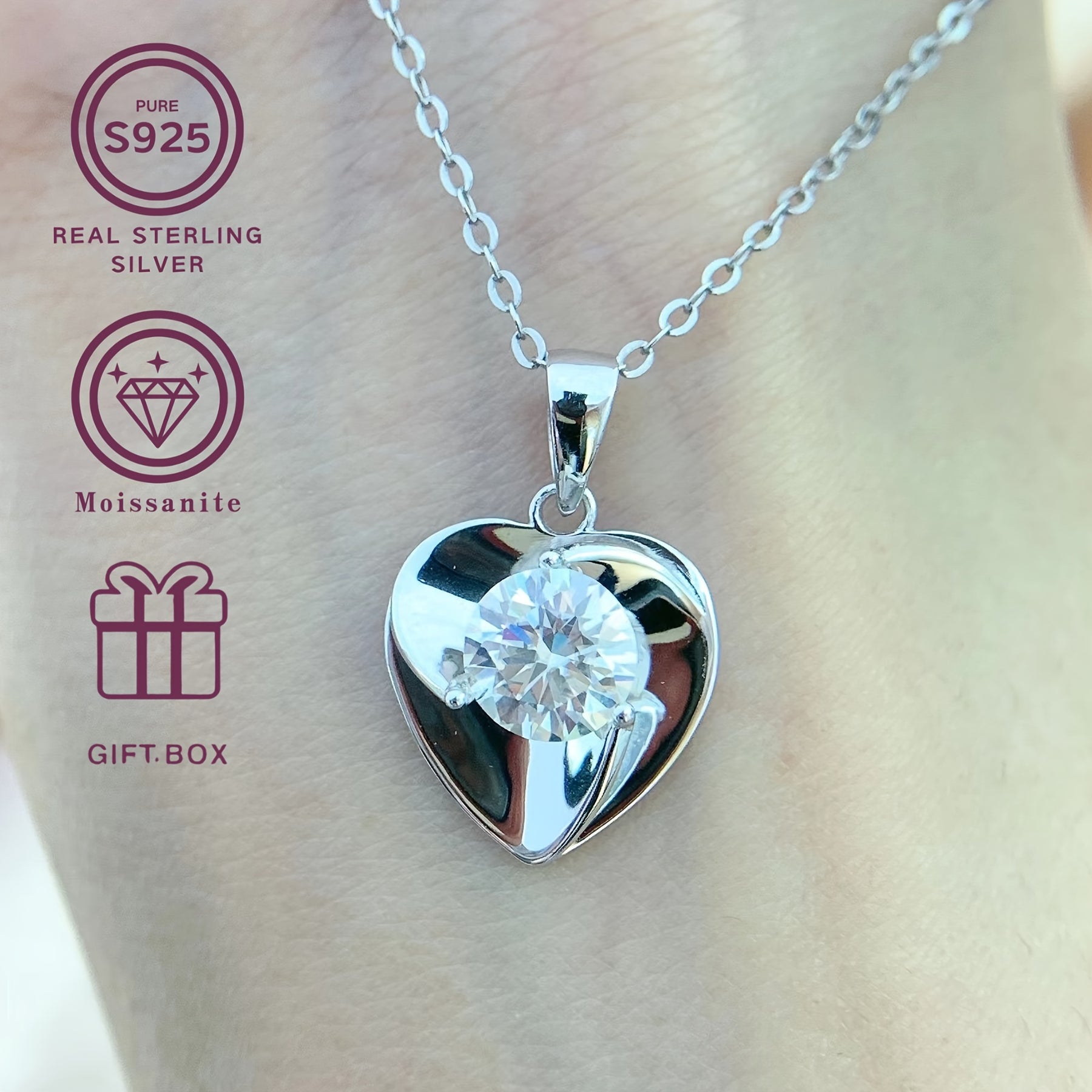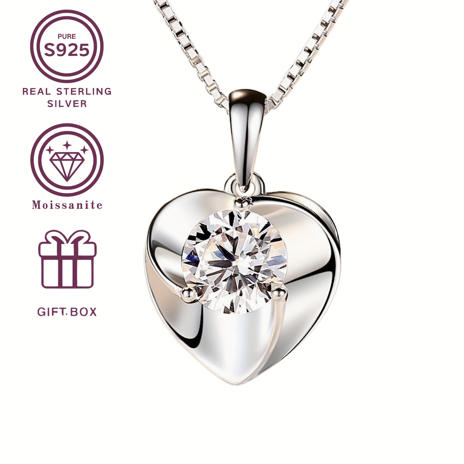 This stunning S925 sterling silver necklace features a heart-shaped moissanite, making it an ideal gift for birthdays or Mother's Day.