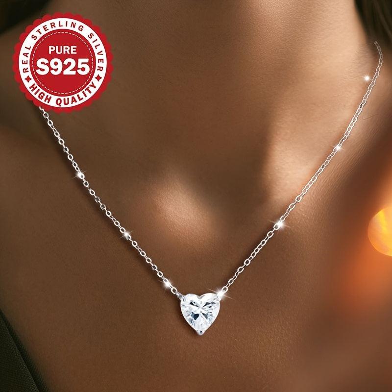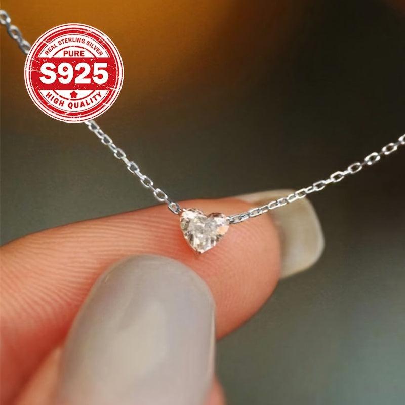 This elegant heart necklace is made of high-quality S925 silver and features a stunning design that sparkles. It is lightweight at 1.8g, making it comfortable to wear all day long.