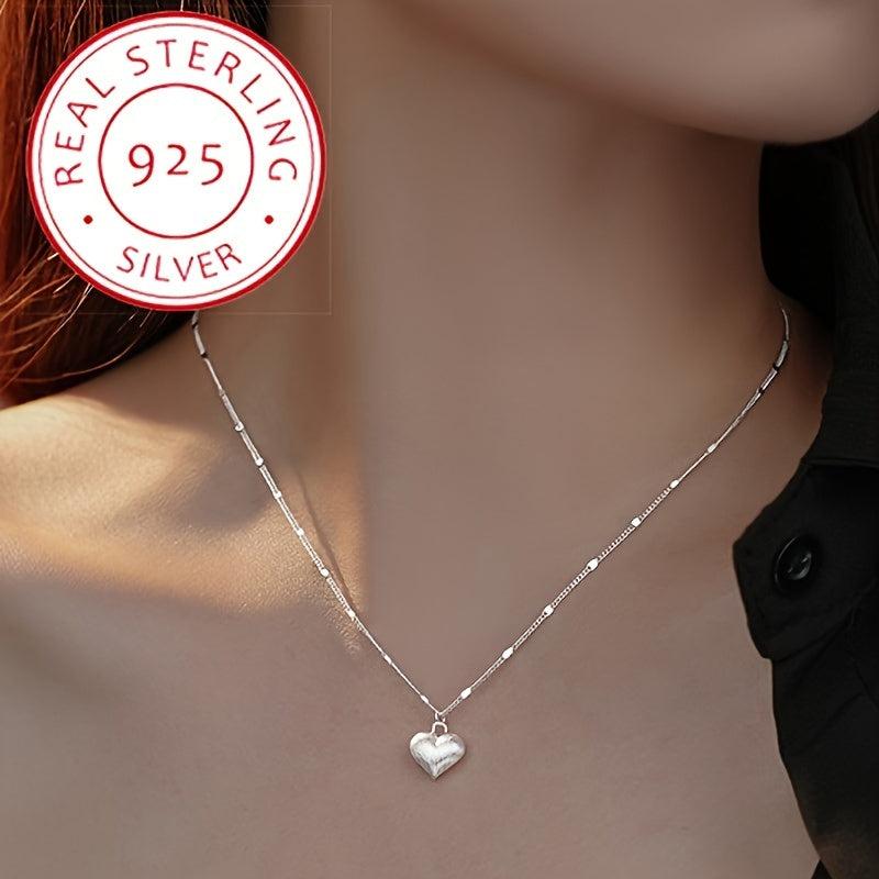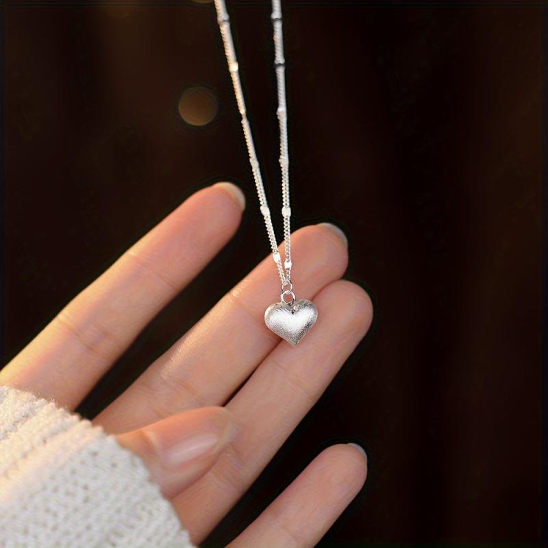 Chic and versatile drawstring heart necklace made of 2.6g S925 silver for women. Unique heart shape design that complements any outfit, perfect for collarbone layering.