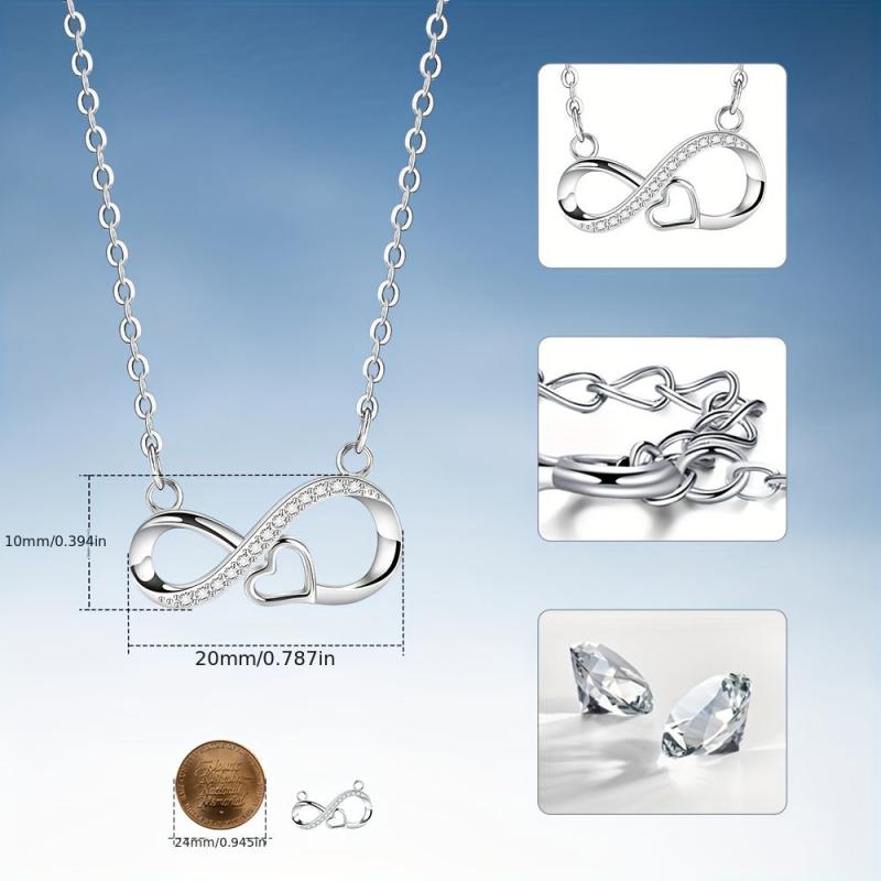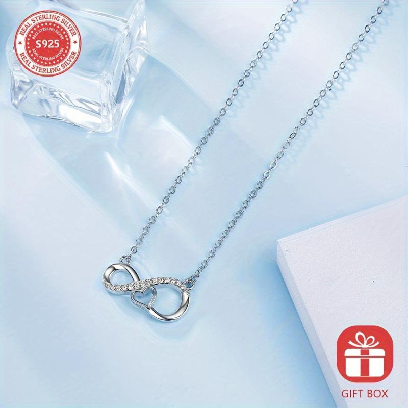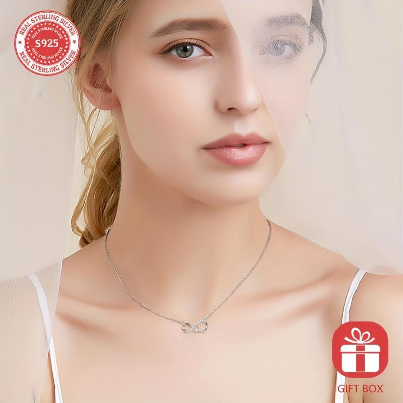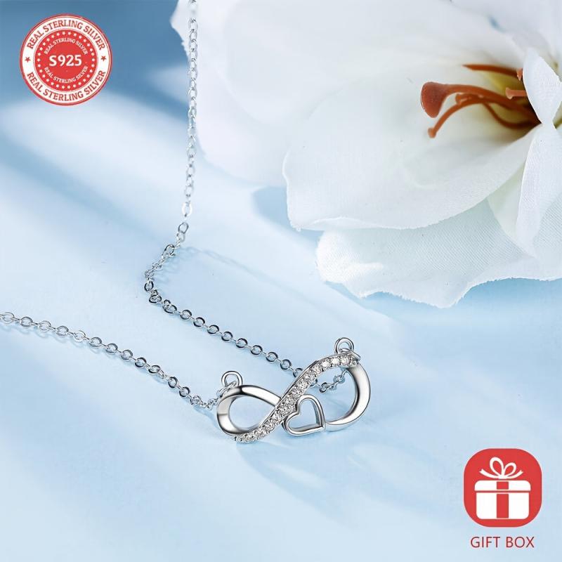 Elegant and stylish S925 silver necklace with infinity love symbol, perfect for everyday wear. Hypoallergenic and suitable for sensitive skin.
