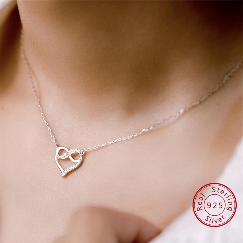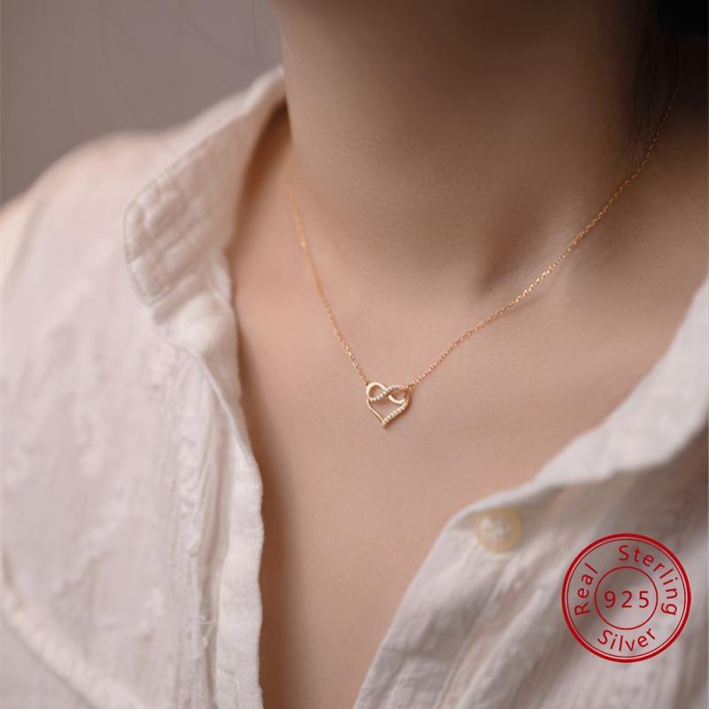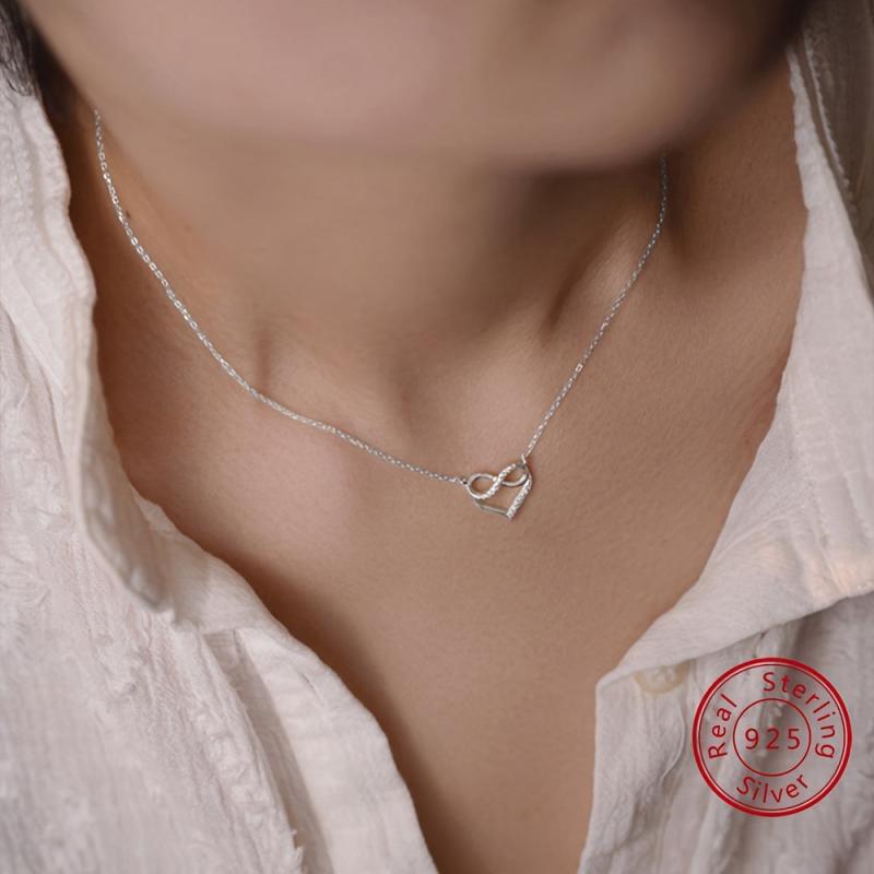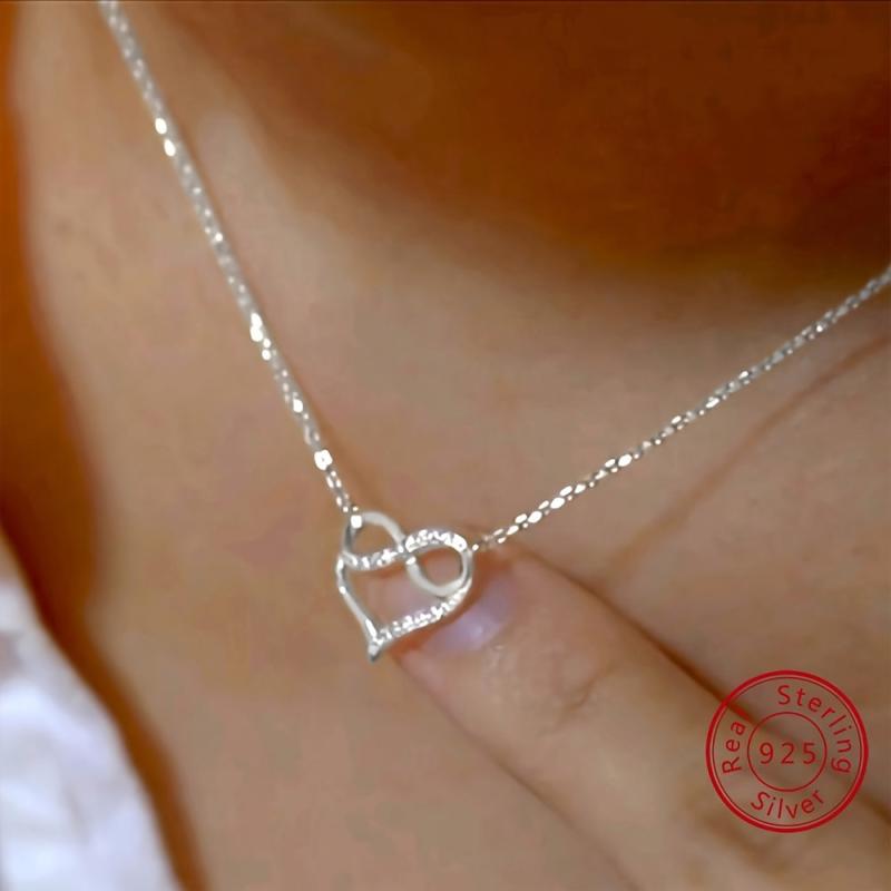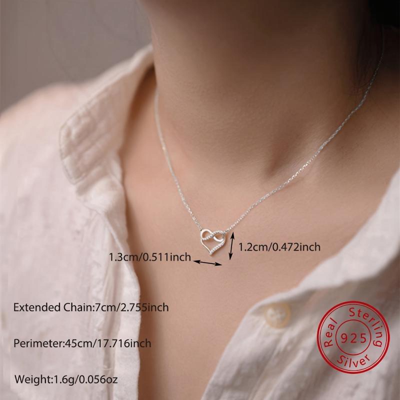 This delicate S925 silver necklace features a love heart design with zirconia stones. The 8-shaped clavicle chain adds a touch of elegance. Perfect as a gift for women.