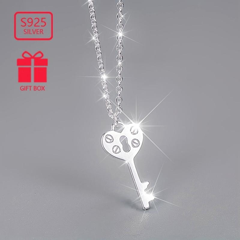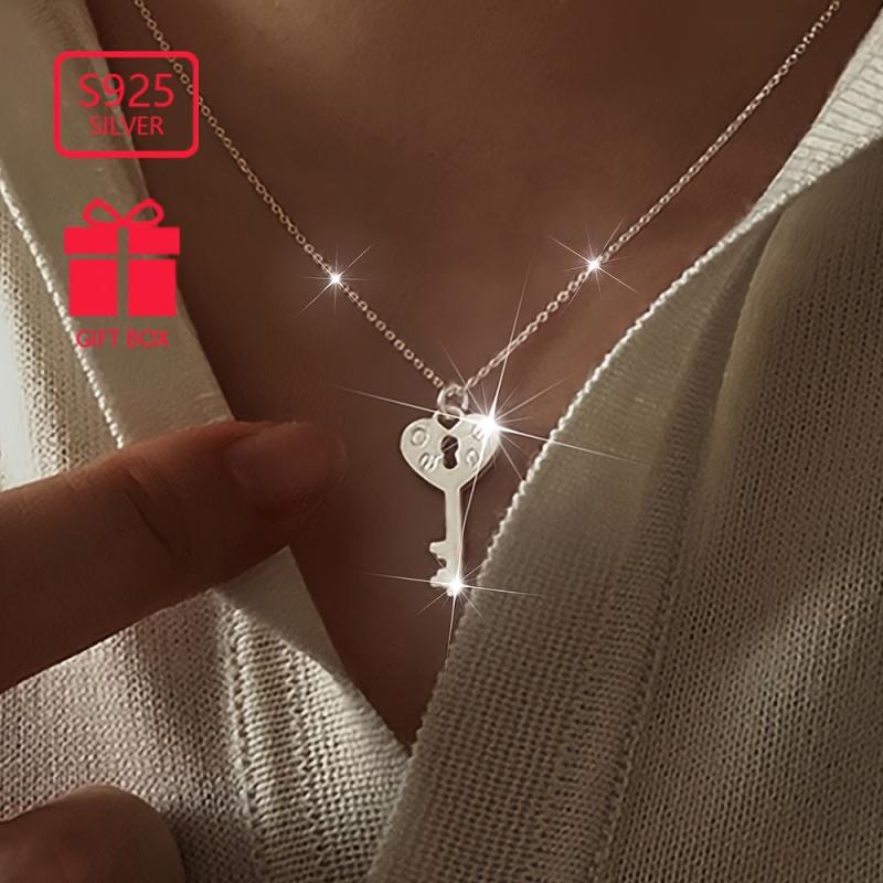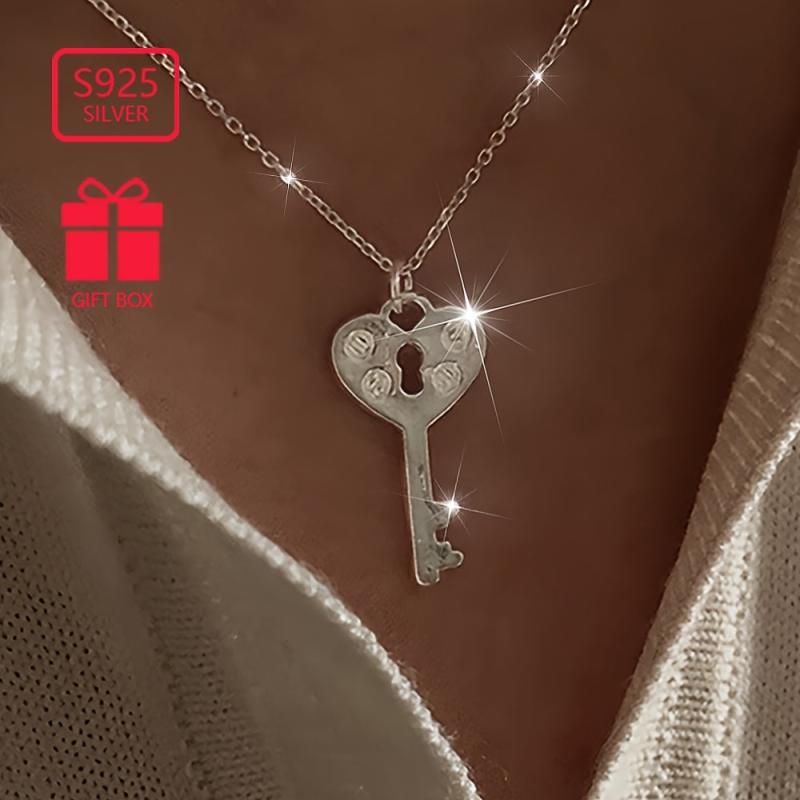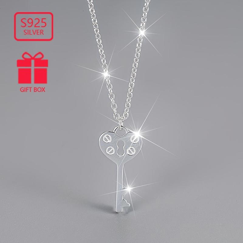 Give your girlfriend a special gift with this S925 sterling silver love key pendant necklace. This delicate piece is perfect for showing your love and appreciation.