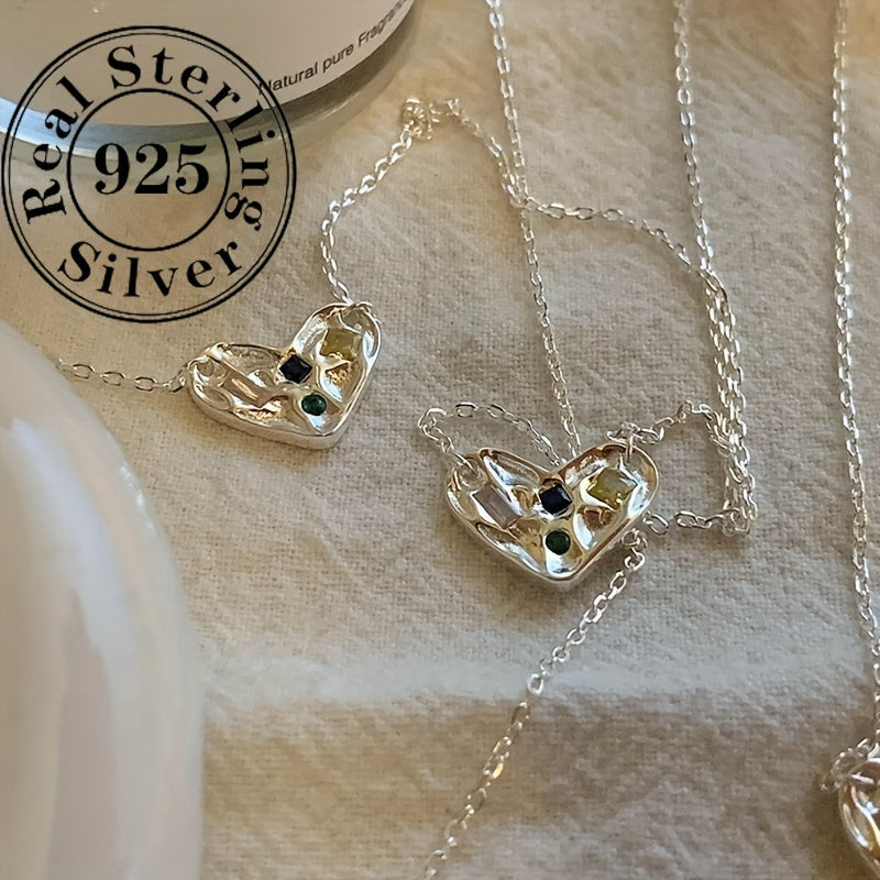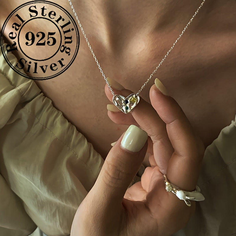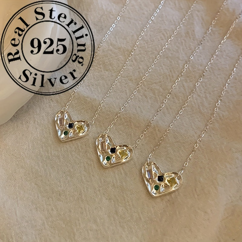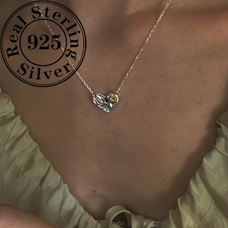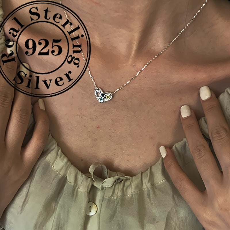 This S925 pure silver necklace features an irregular love design with a heart-shaped pendant. It is a great gift for your girlfriend as it is low allergy and delicate. The chain is about 3.5 inches long.