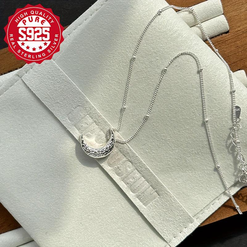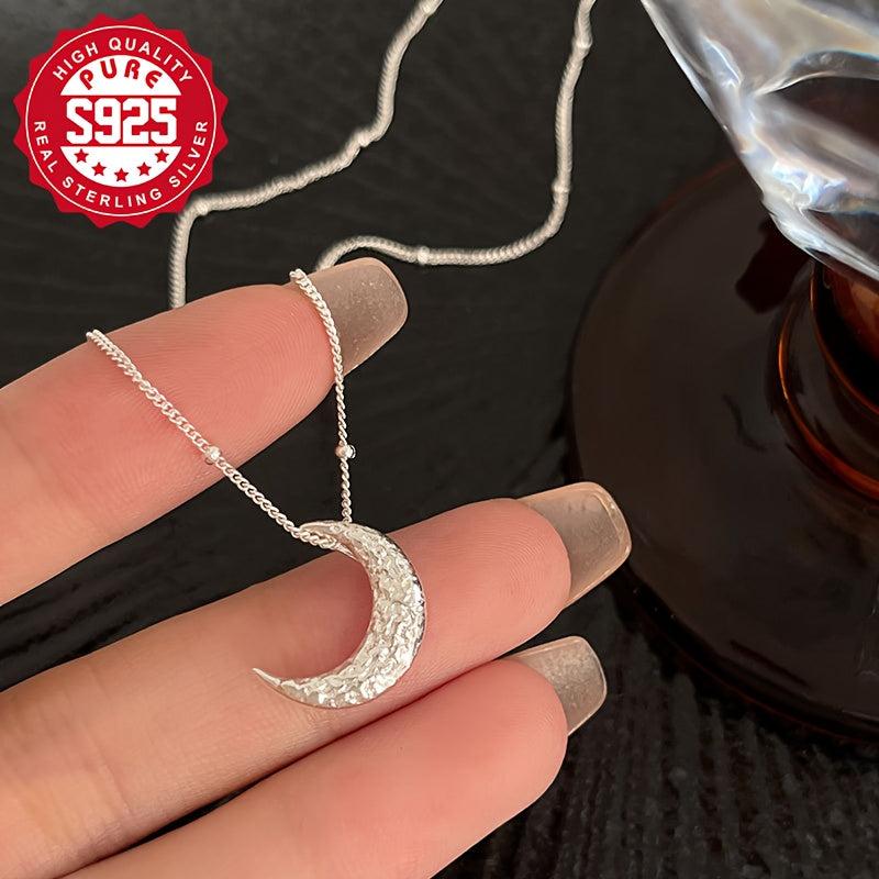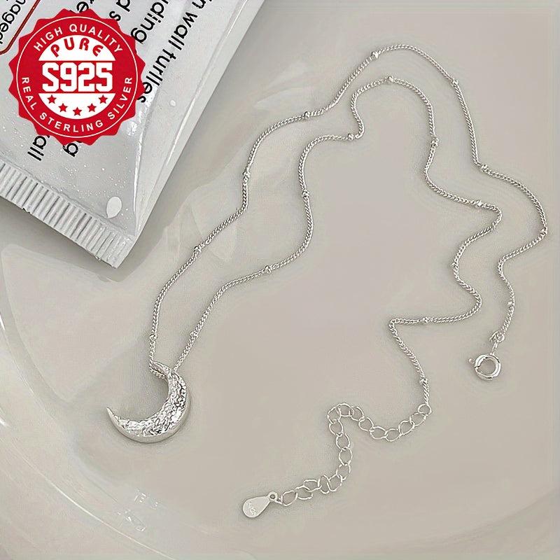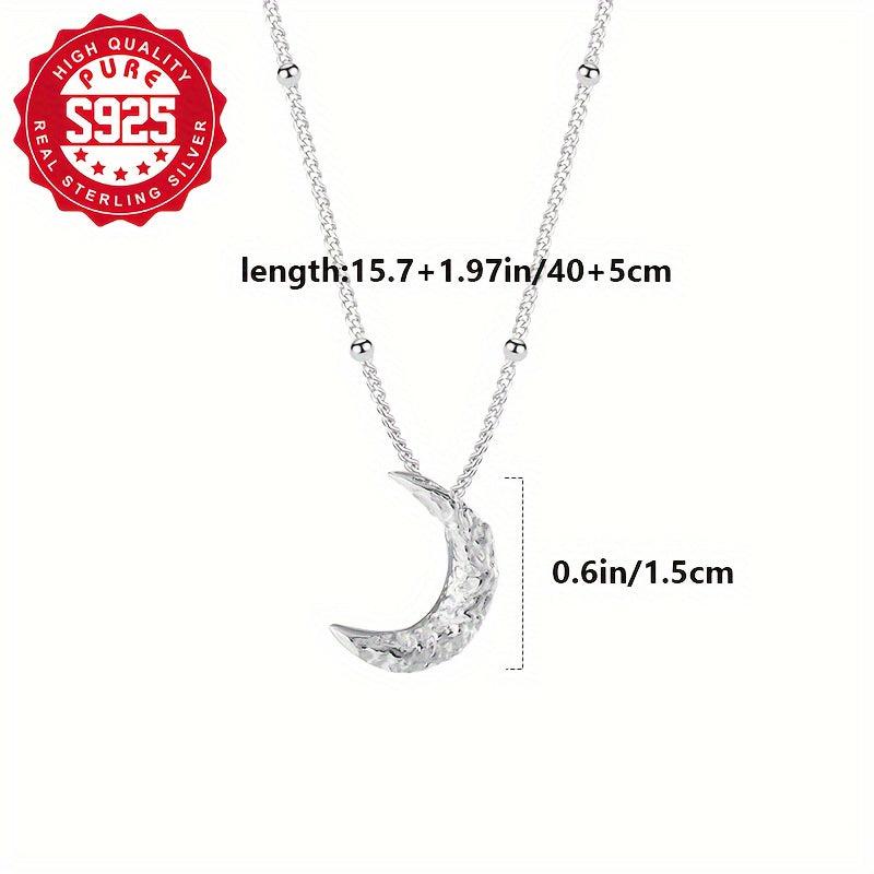 Add a touch of celestial charm with this stunning S925 silver beaded moon necklace. Its sparkling design is perfect for everyday wear or special occasions, shining like starlight. A stylish accessory that will elevate any outfit.