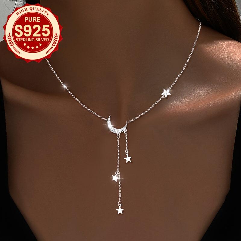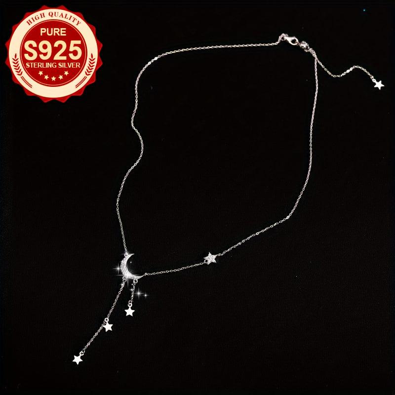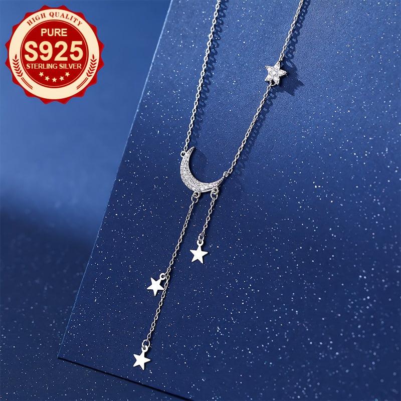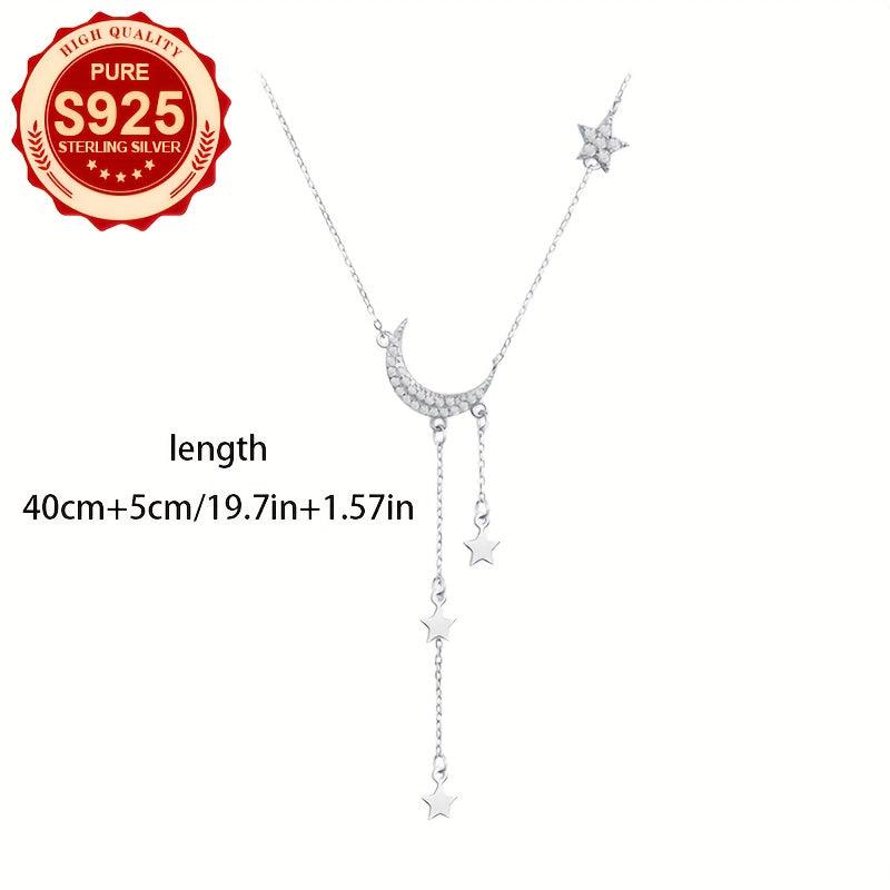 This S925 silver necklace features a moon tassel star design, offering a dreamy and elegant look. It's versatile and fashionable, making it a thoughtful gift for women. Hypoallergenic and gentle on the skin.