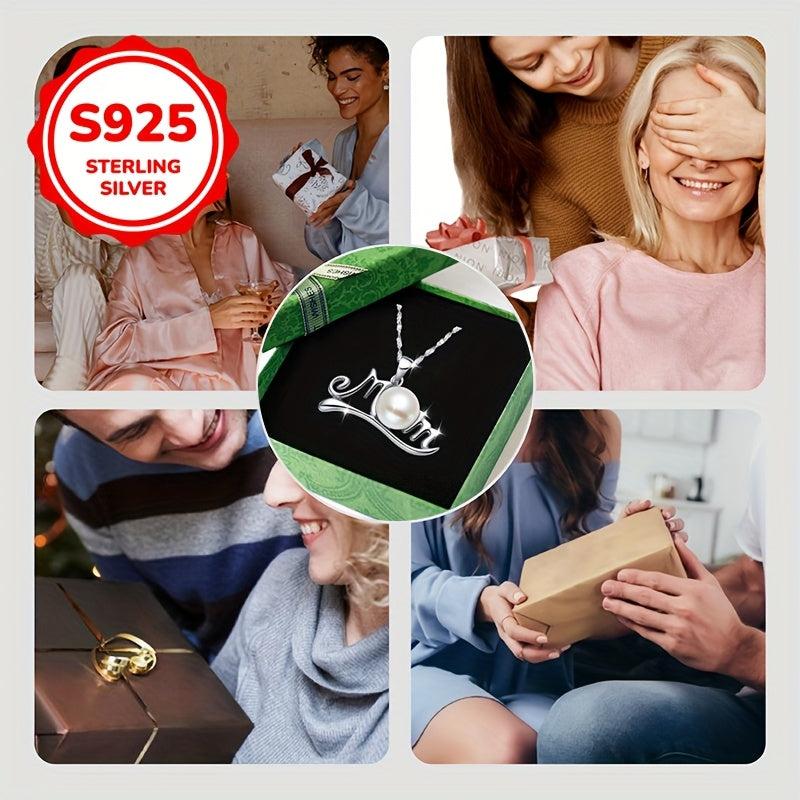 S925 Silver Mother Pendant Necklace with Heart & Bow Charm for Women