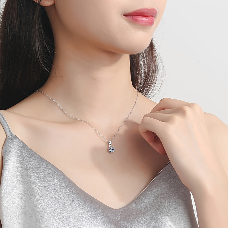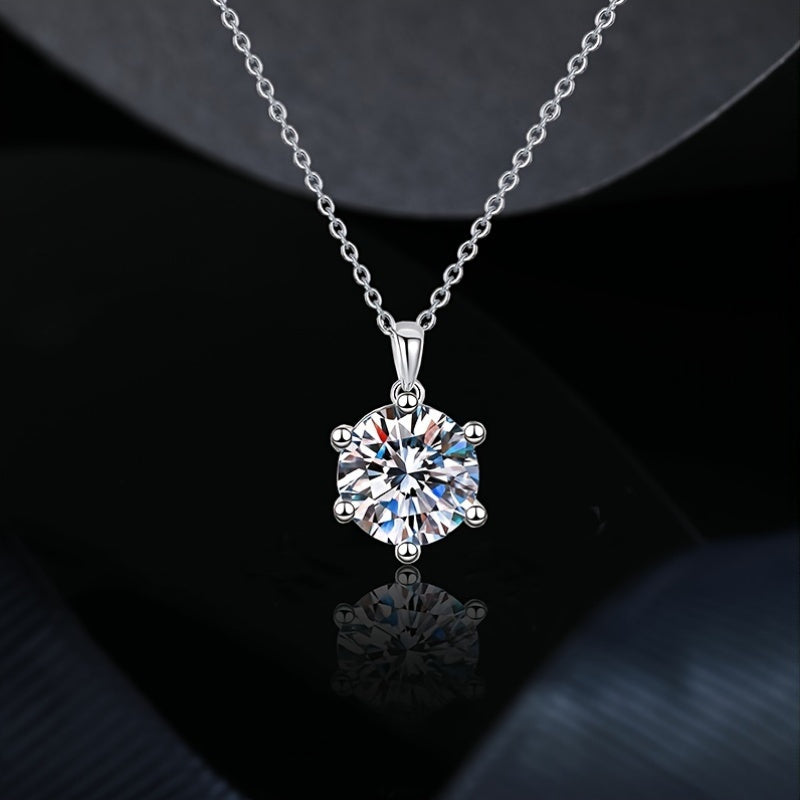 This necklace for women features a stunning S925 silver pendant available in 1 carat or 3 carat options. The pendant is showcased in a dazzling six-claw setting, adding elegance to any outfit.