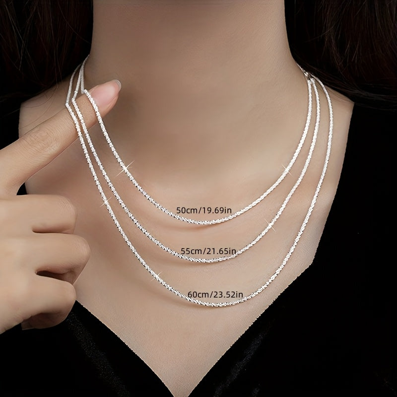 Add a touch of elegance with this unique S925 silver necklace featuring sparkling waves. This fashionable bare chain makes a perfect gift for Christmas.