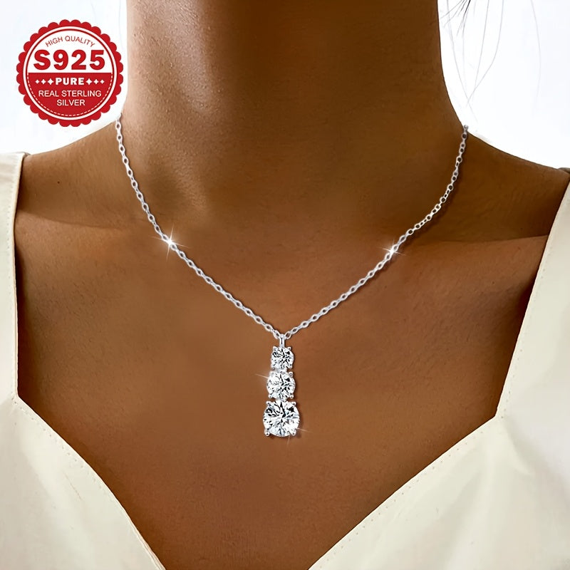 Elegant S925 sterling silver necklace with synthetic zirconia for a touch of sparkle. Perfect for daily wear, this classic piece adds a timeless charm to your outfit.