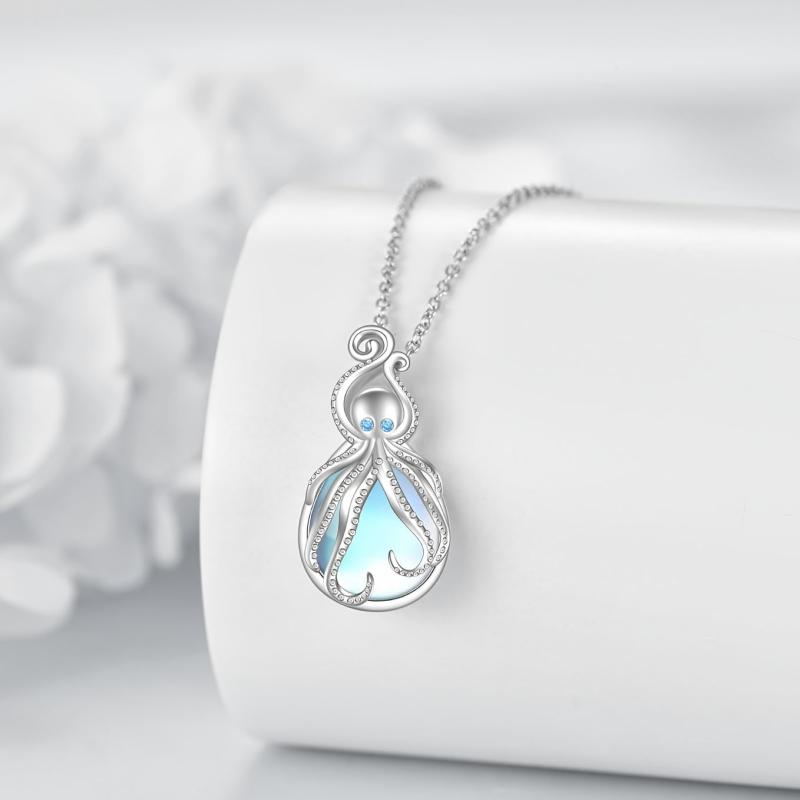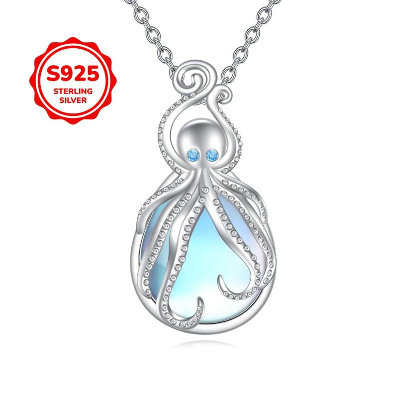Elegant octopus-shaped necklace crafted from S925 silver with a moonstone pendant. Perfect for daily wear or as a special gift. Weighs 3.4 grams.