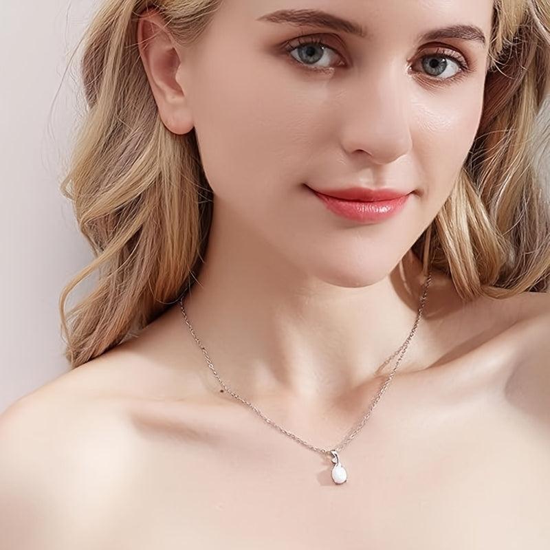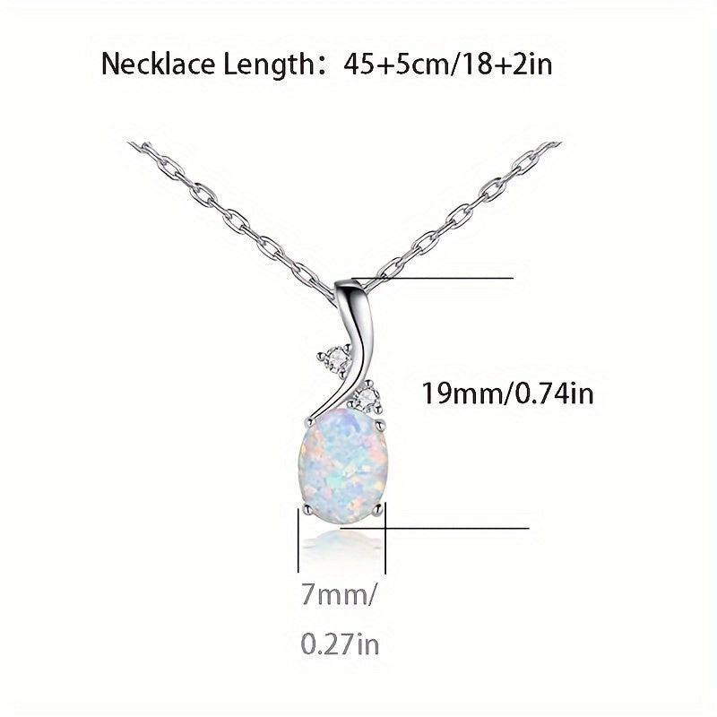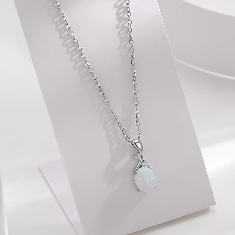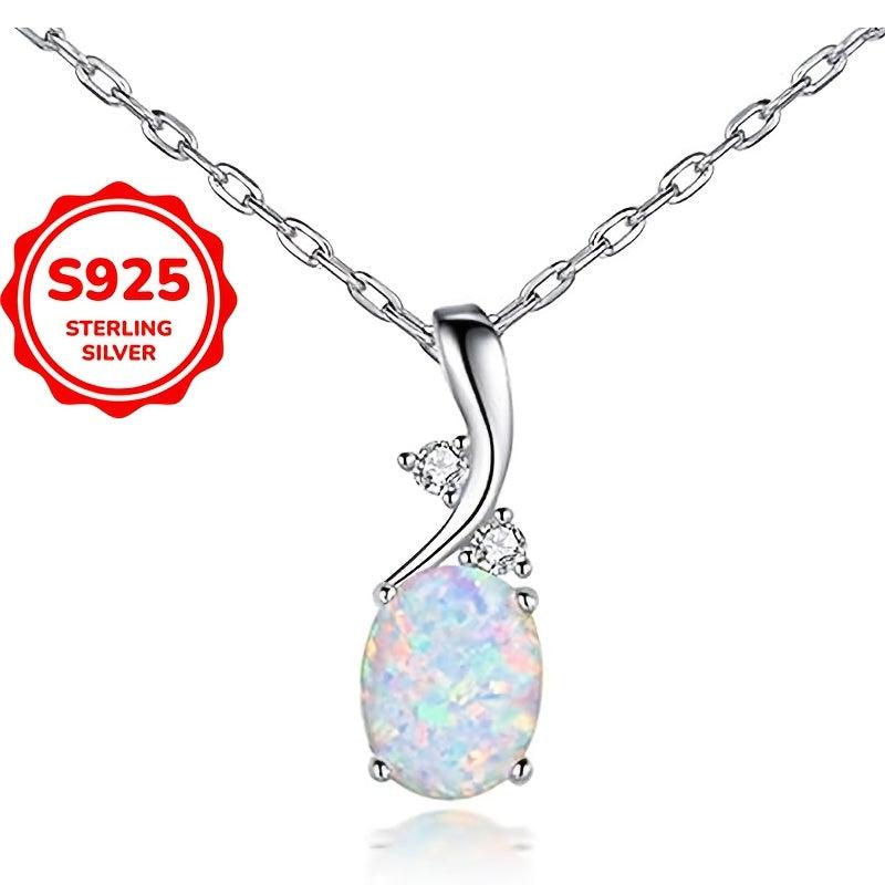Elegant pendant necklace featuring opal and synthetic zirconia inlay on solid s925 silver. Perfect for daily wear with low allergy risk. Necklace weight is 3.8 grams.