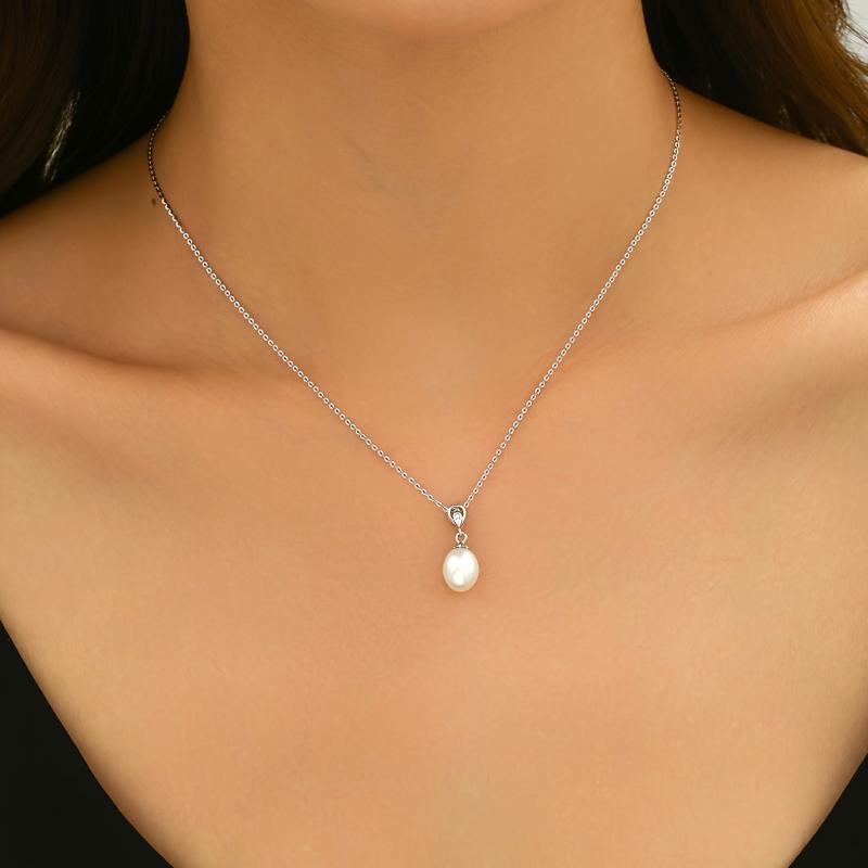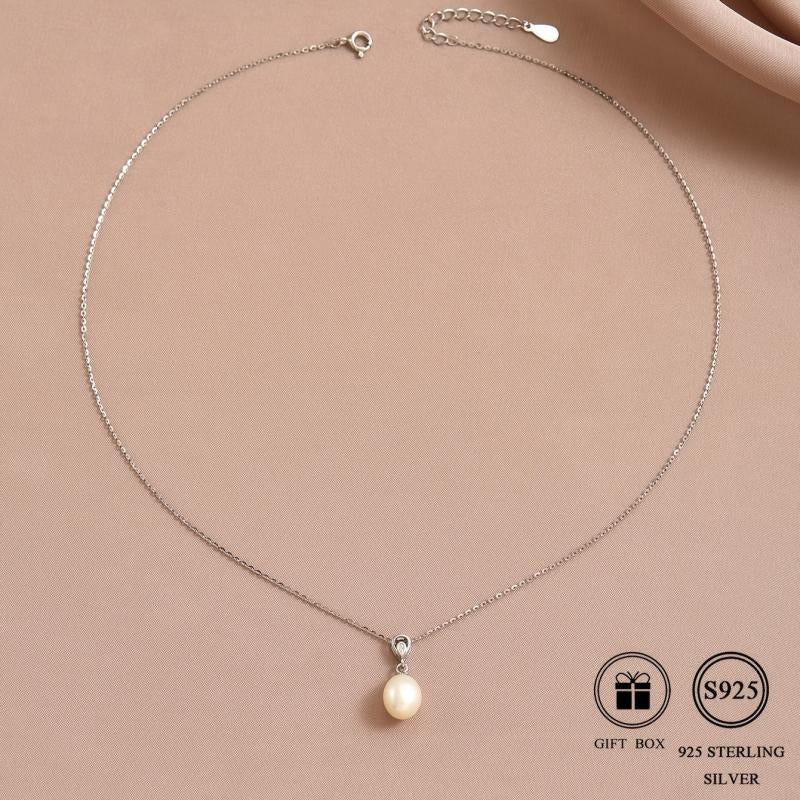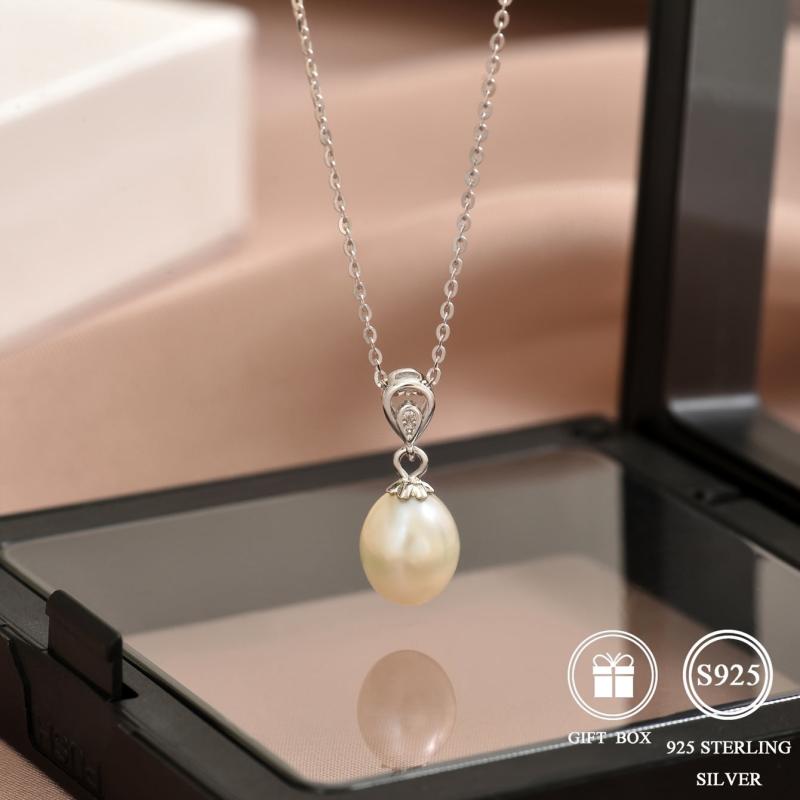 Elegant pearl pendant necklace made of high-quality S925 silver and freshwater pearls.