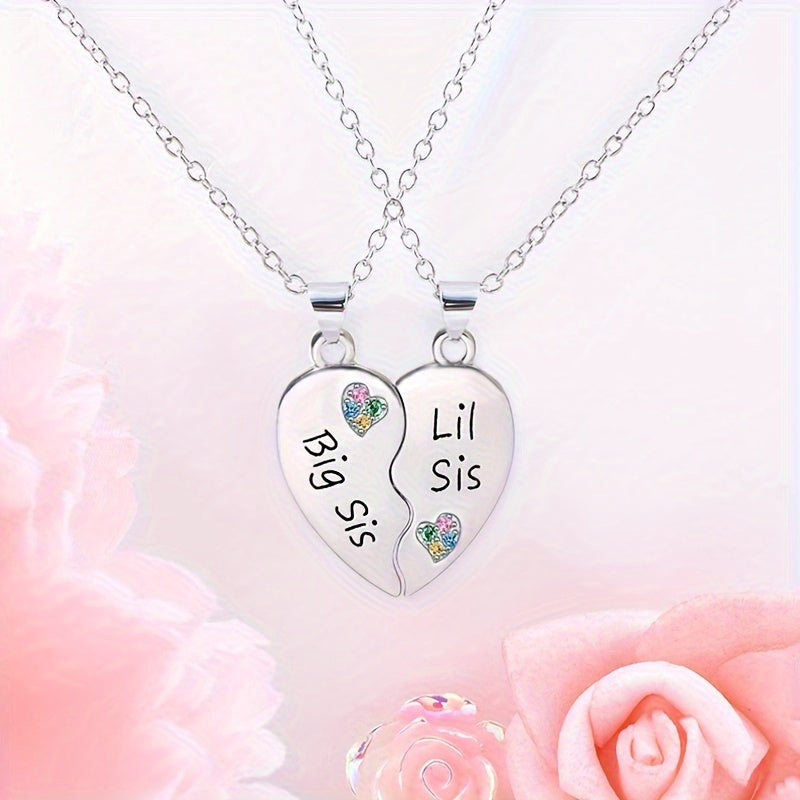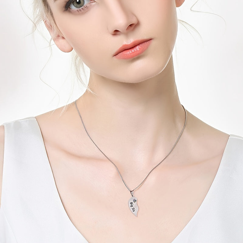 This beautiful S925 sterling silver heart necklace is the perfect gift for sisters, featuring colorful cubic zirconia splicing. Ideal for birthday and family celebrations.