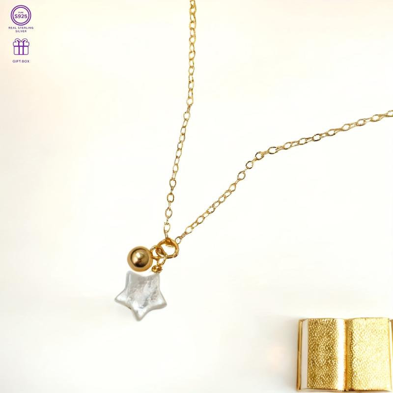 Embrace your dreams and hopes with this striking necklace featuring a silver star pendant and a golden sphere for added blessings.
