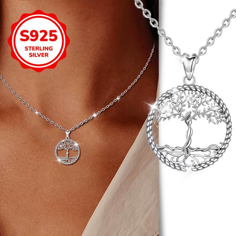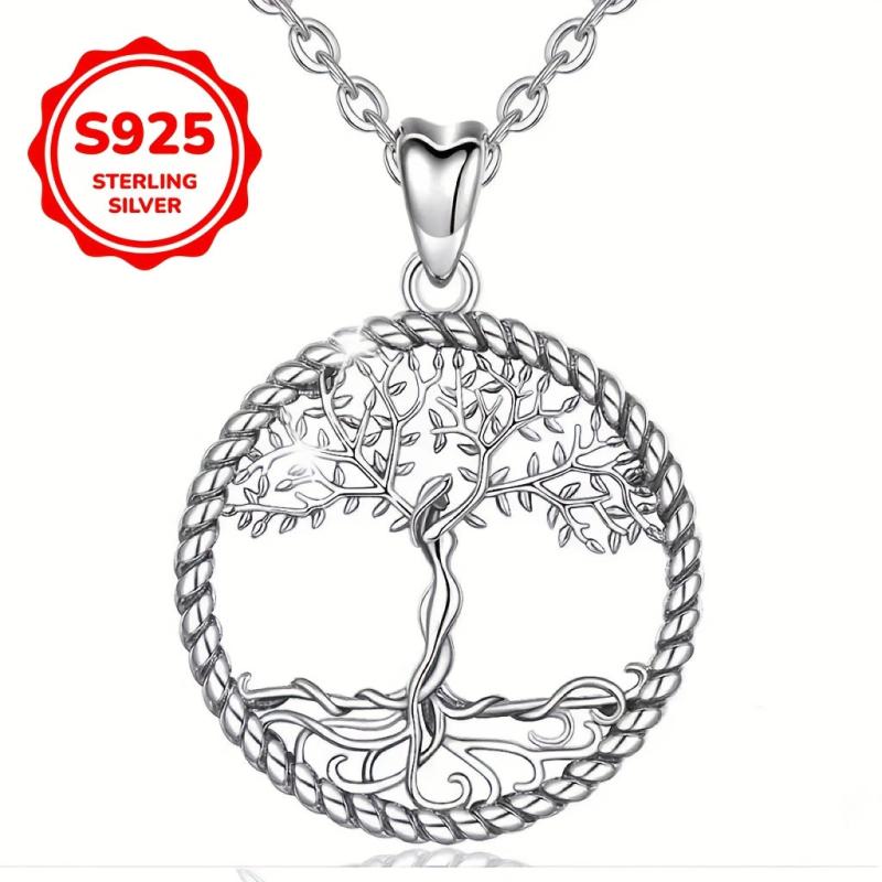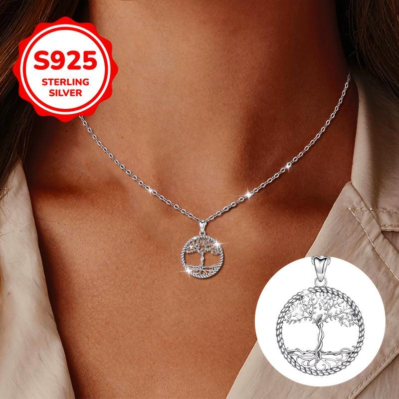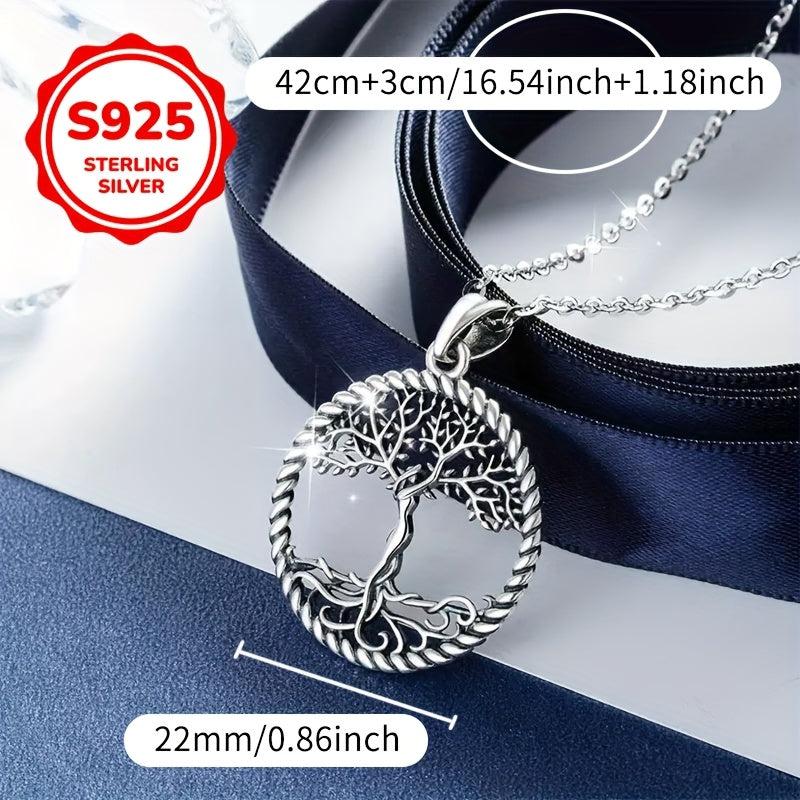 Intricately designed S925 silver pendant necklace with a Tree of Life motif. Perfect for women, friends, and special occasions.