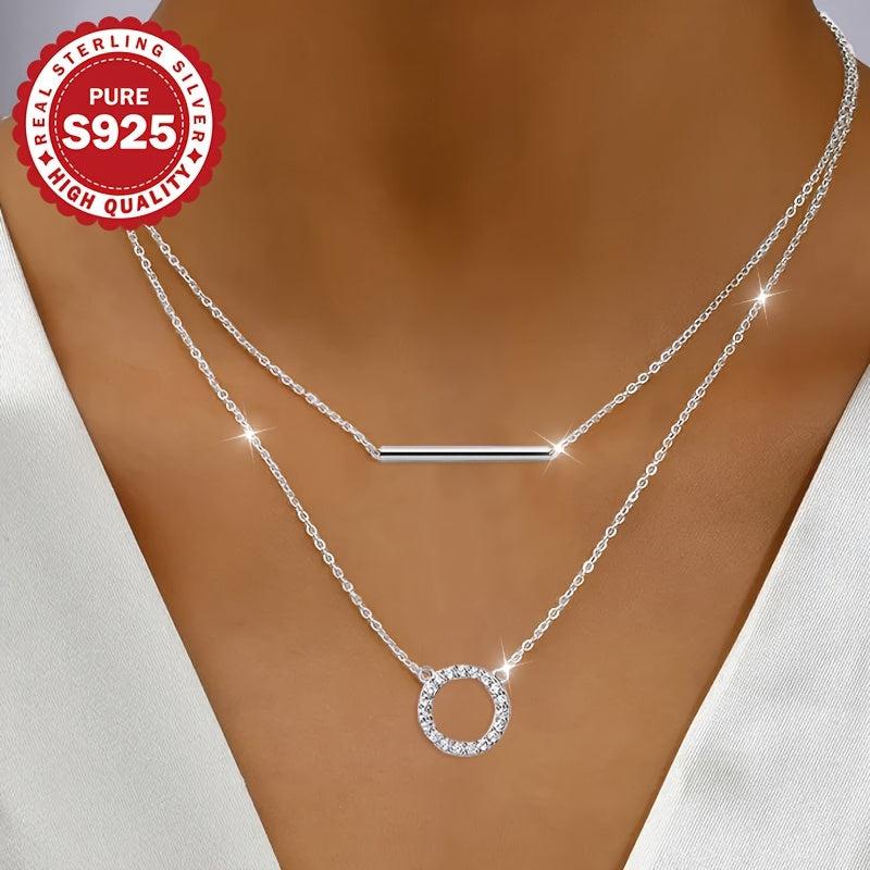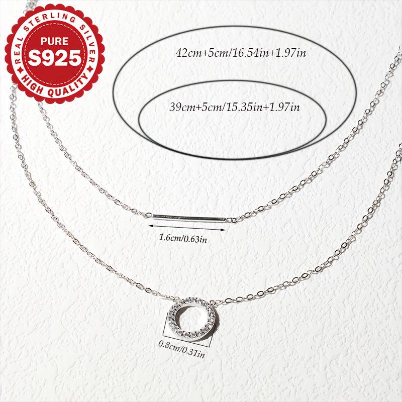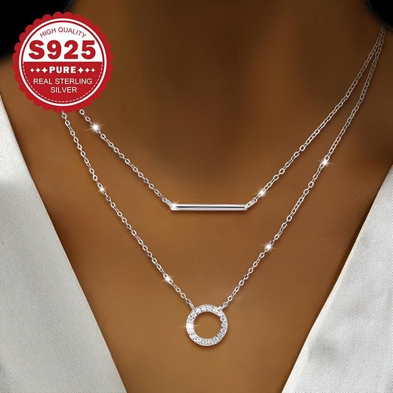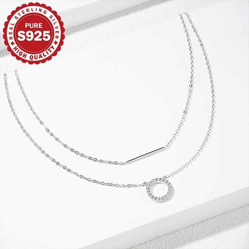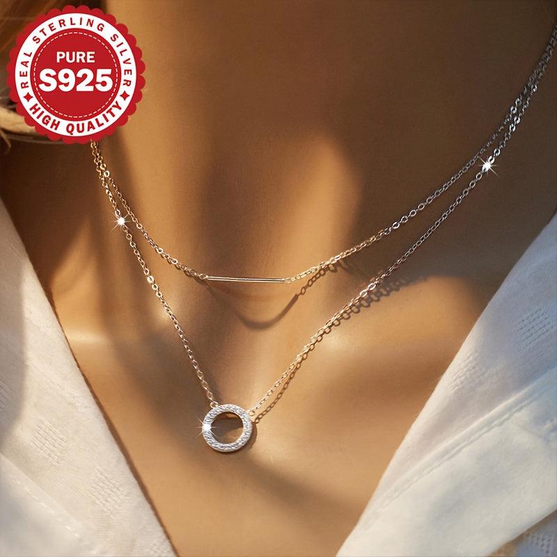 Elevate your style with this high-end S925 sterling silver necklace featuring a classic round circle design. This double-layered geometric collarbone chain exudes minimalist charm and elegance.