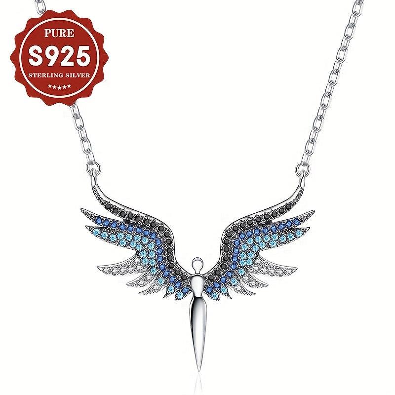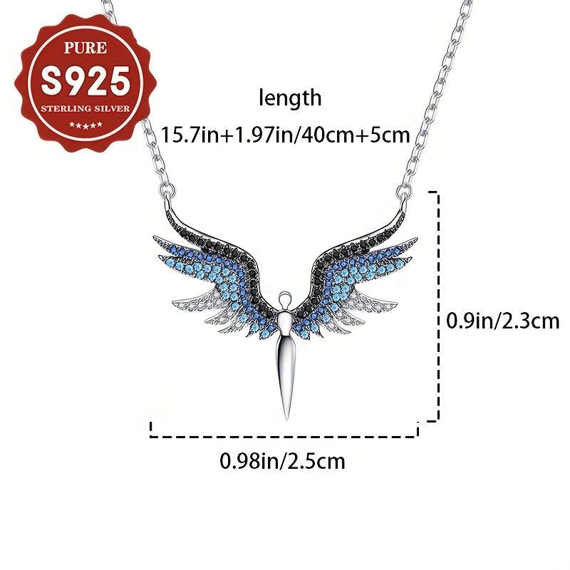 This stunning necklace is crafted from S925 silver with a beautifully designed angel wings pendant adorned with synthetic zirconia stones. Perfect for special occasions or as a thoughtful gift.