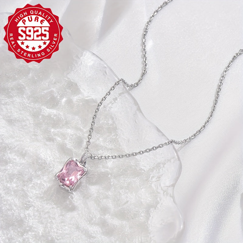 S925 Silvery Pink Zirconia Women's Pendant Necklace