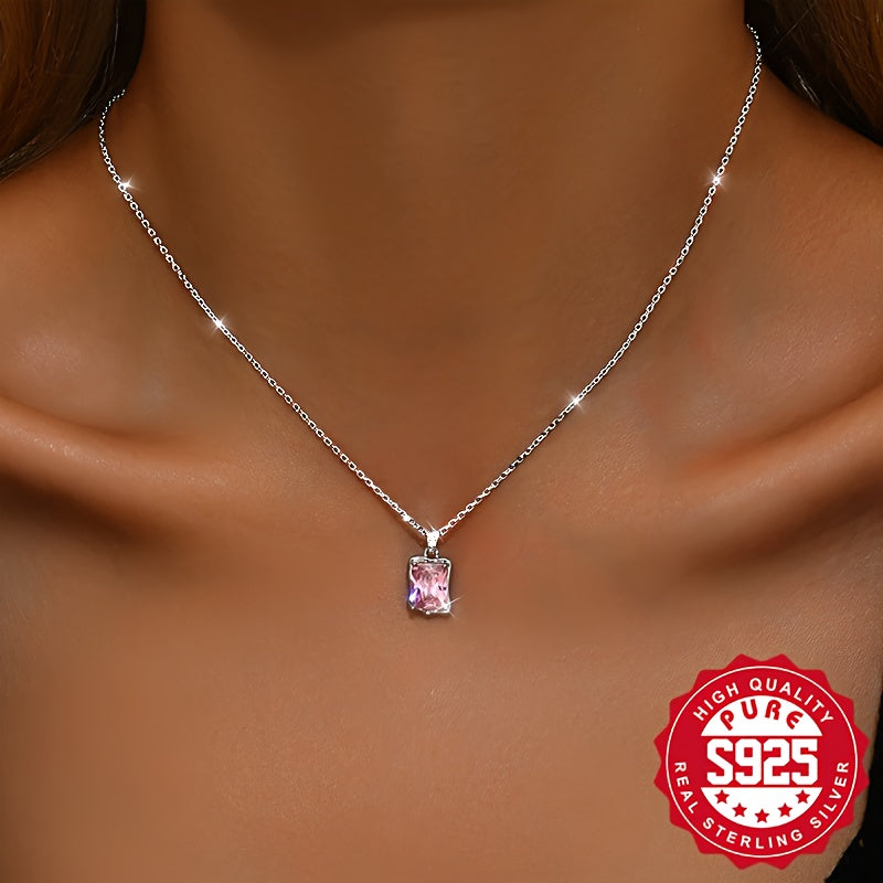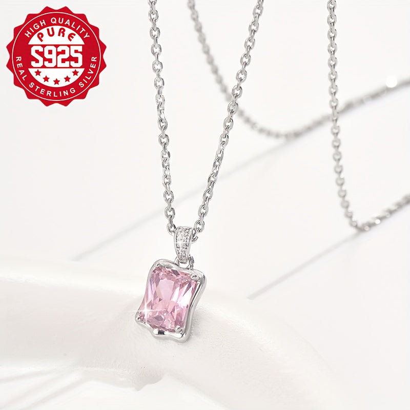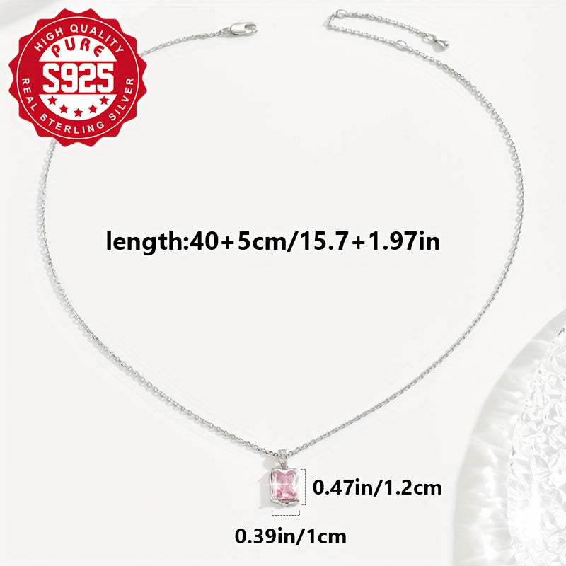 An elegant and trendy pendant necklace crafted from S925 silver, featuring a pink synthetic zirconia with an irregular geometric face. This piece is sexy, fashionable, and versatile, making it perfect for any occasion.