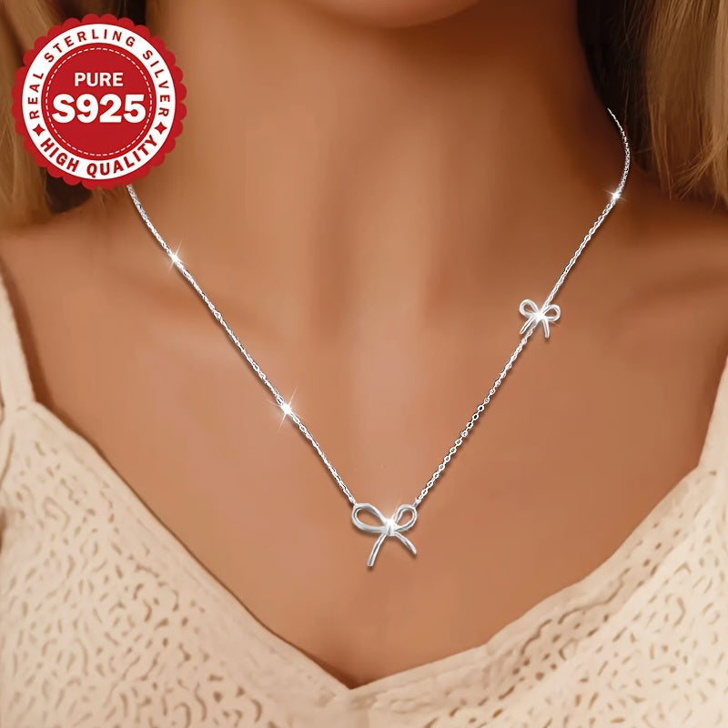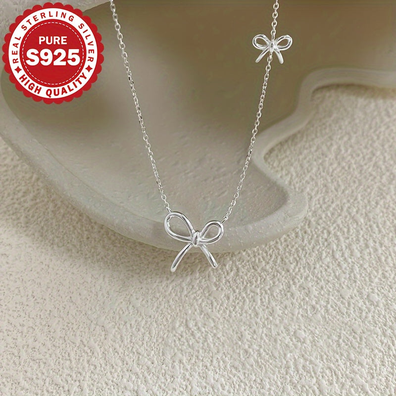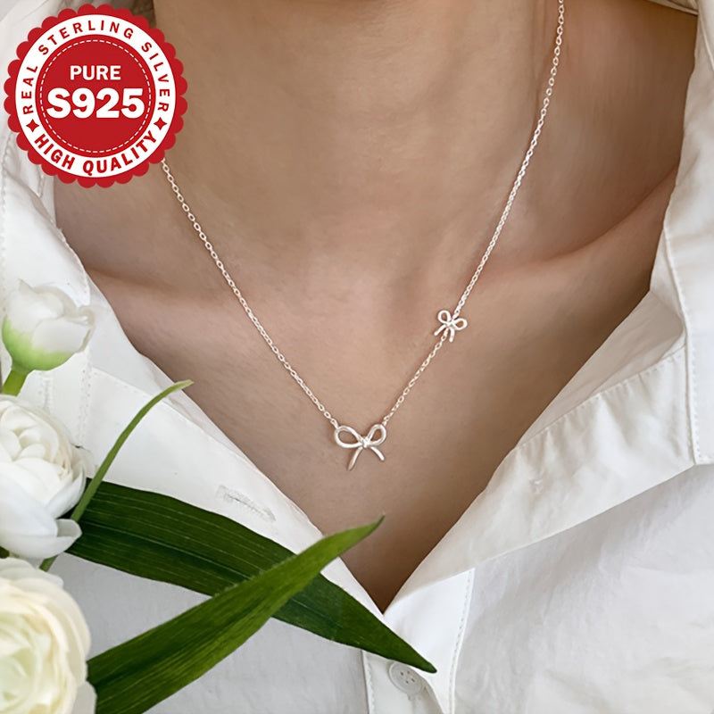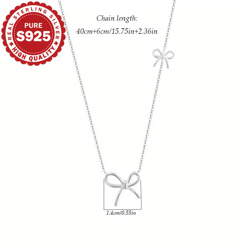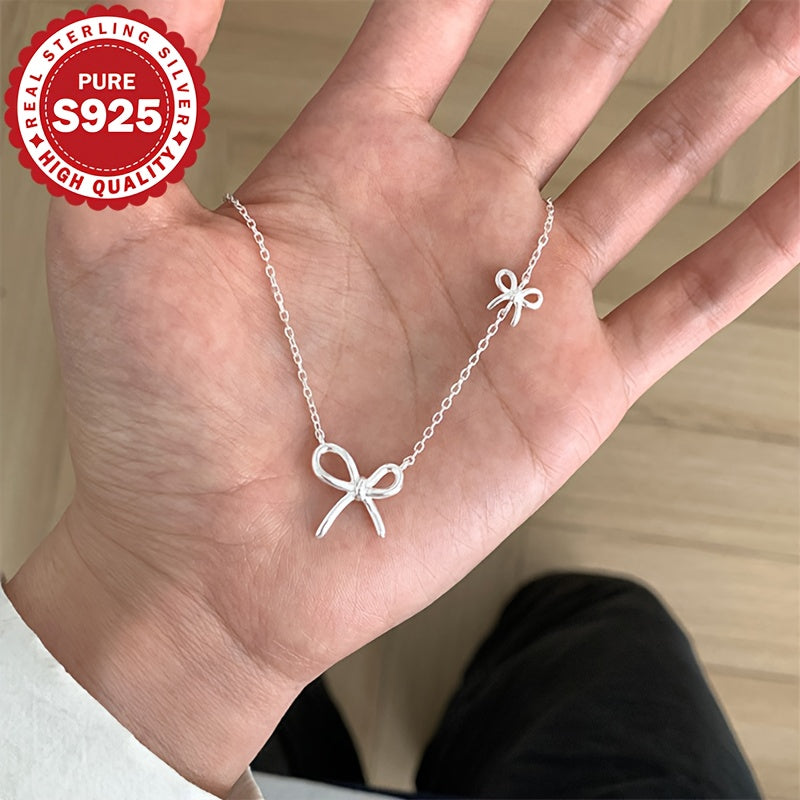 Elegant and minimalist, this women's necklace is made of S925 sterling silver with a bow design. Its hollow structure adds a touch of delicacy.