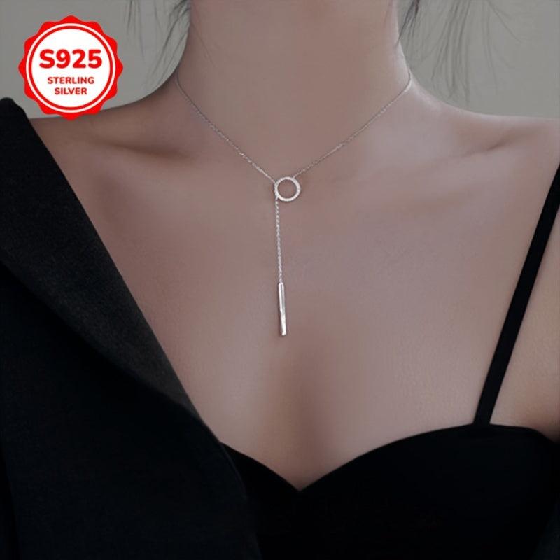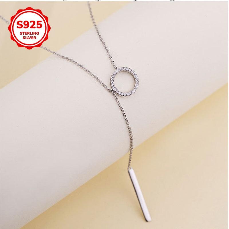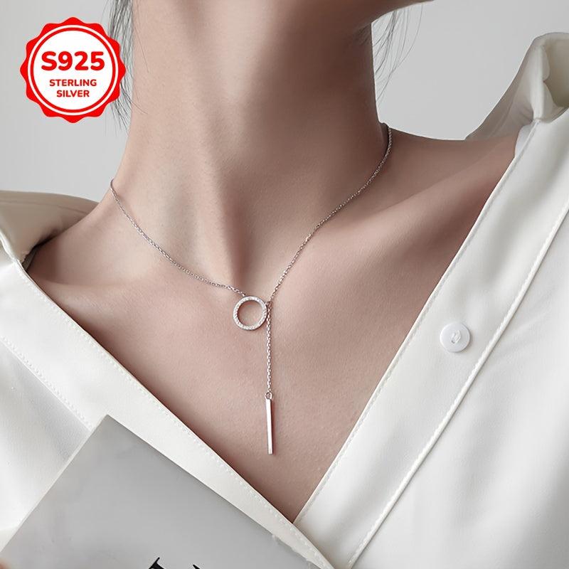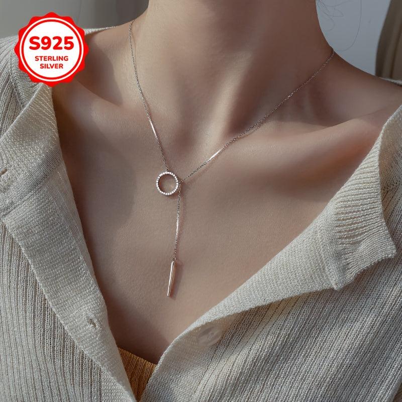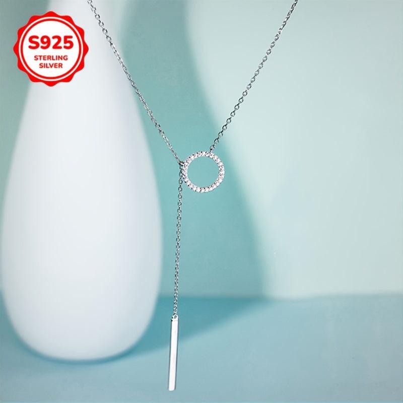 Chic and trendy S925 sterling silver necklace featuring a one-word circle design. Ideal for everyday wear and versatile styling with an adjustable chain.