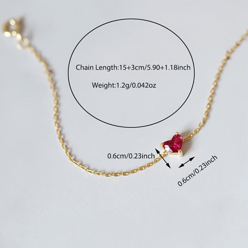 Elegant and stylish, this bracelet features a red heart cubic zirconia pendant, perfect for daily wear or as a gift for friends. Crafted from high-quality S925 sterling silver.